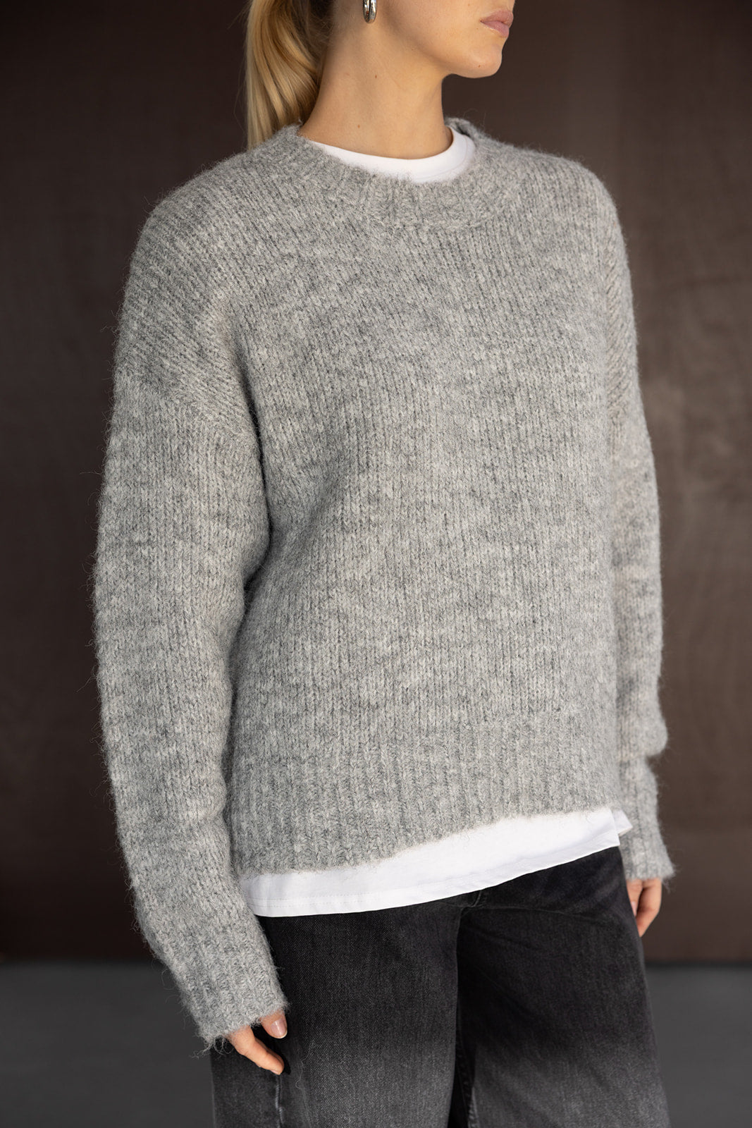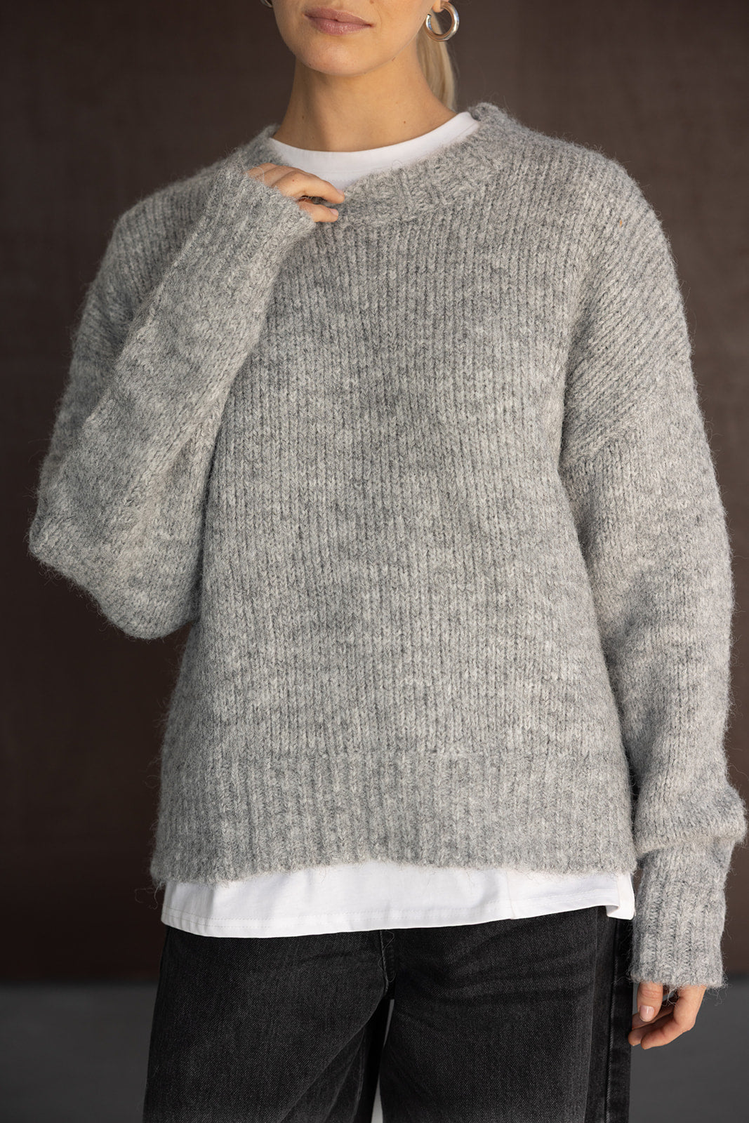 סריג קליל ונעים למגע, בעל מרקם עדין וגזרה מעט רחבה לנוחות מקסימלית. מגיע עם מפתח צוואר עגול וסיומות סריגה נקיות היוצרות מראה קלאסי ומוקפד.