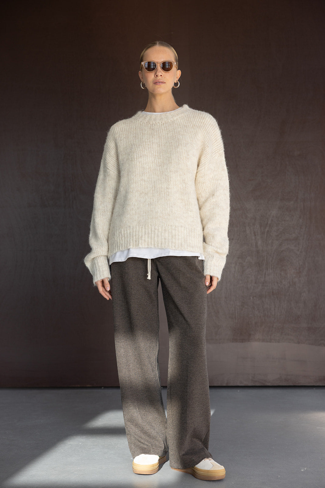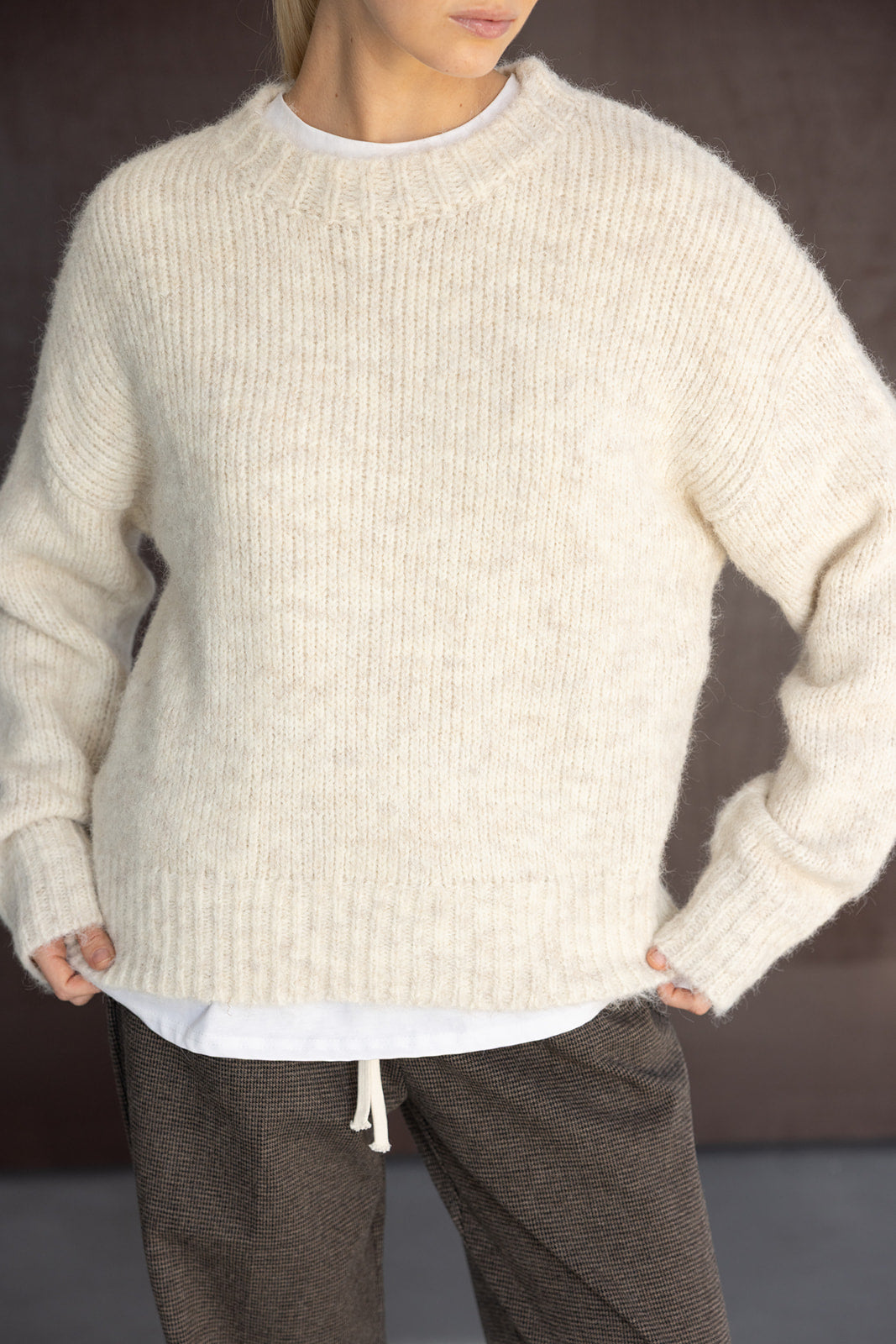 סריג קליל ונעים למגע, בעל מרקם עדין וגזרה מעט רחבה לנוחות מקסימלית. מגיע עם מפתח צוואר עגול וסיומות סריגה נקיות היוצרות מראה קלאסי ומוקפד.