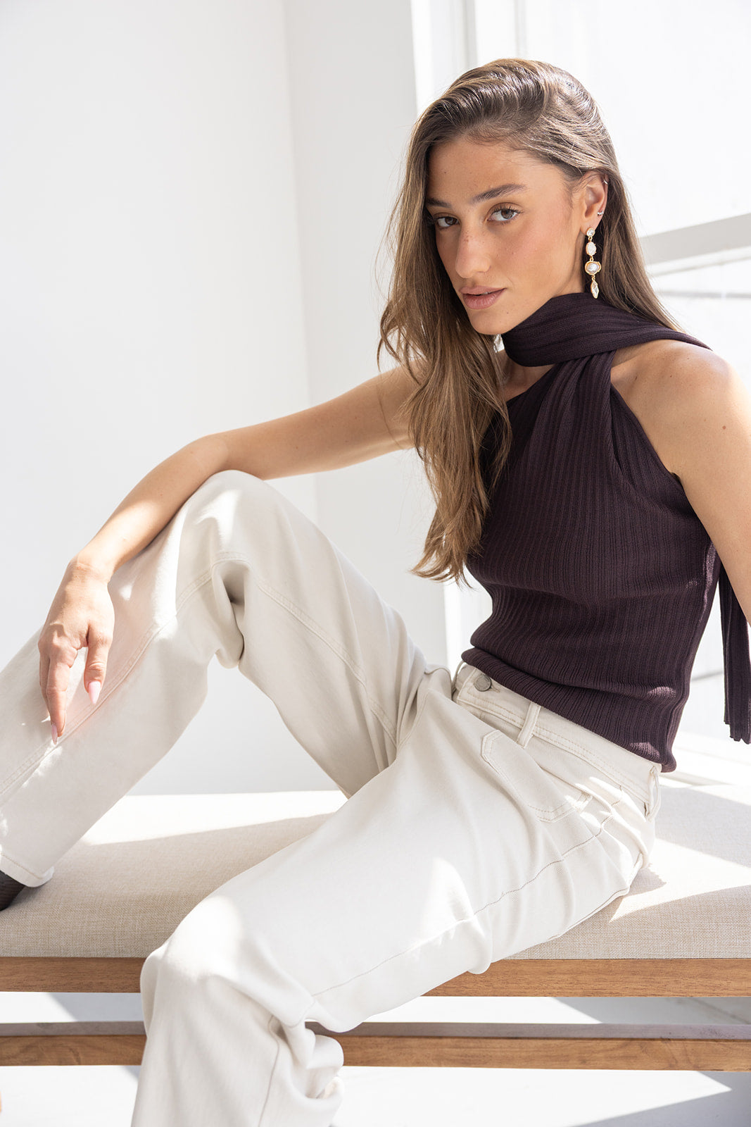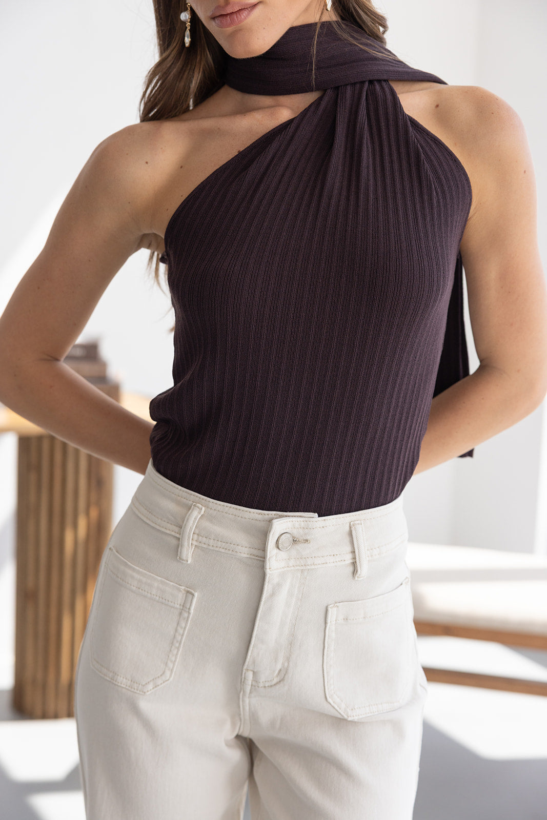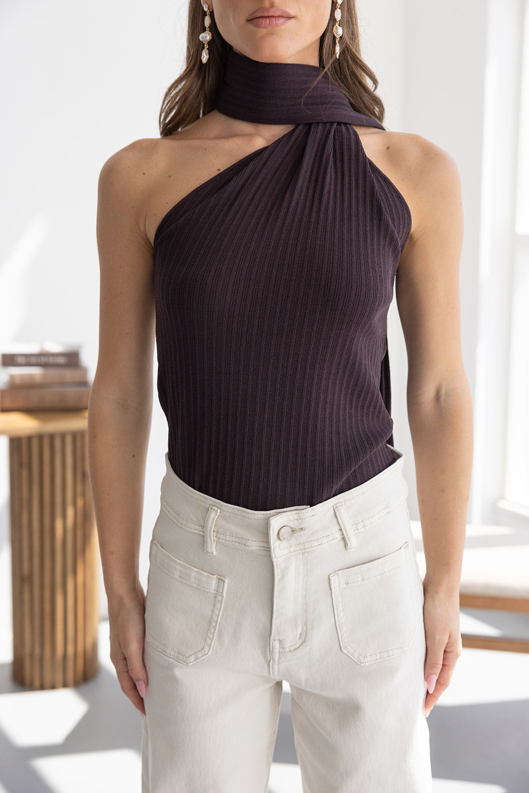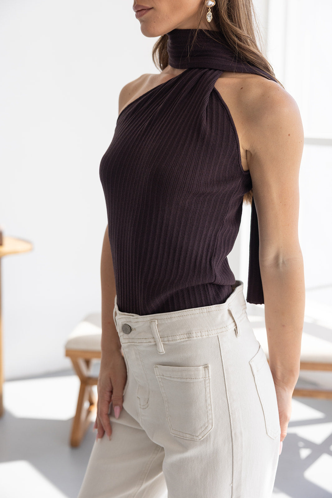 גופיית קולר קשירה נסטיה חומה