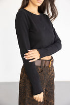 חולצת בייסיק בגזרת קרופ מחמיאה ביותר, בשילוב שרוול ארוך המתאים לעונה וסיומת מלמלה עדינה טרנדית.