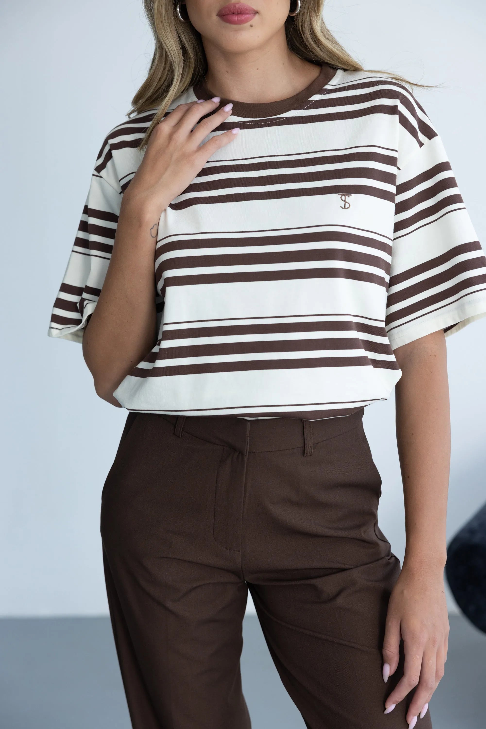 חולצת סטרייפס מריה חומה