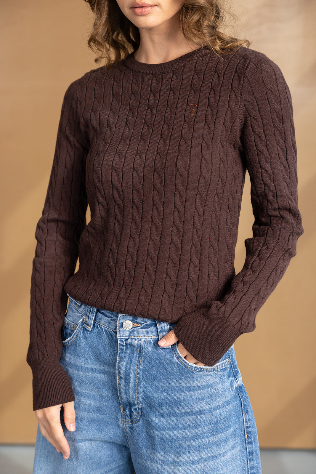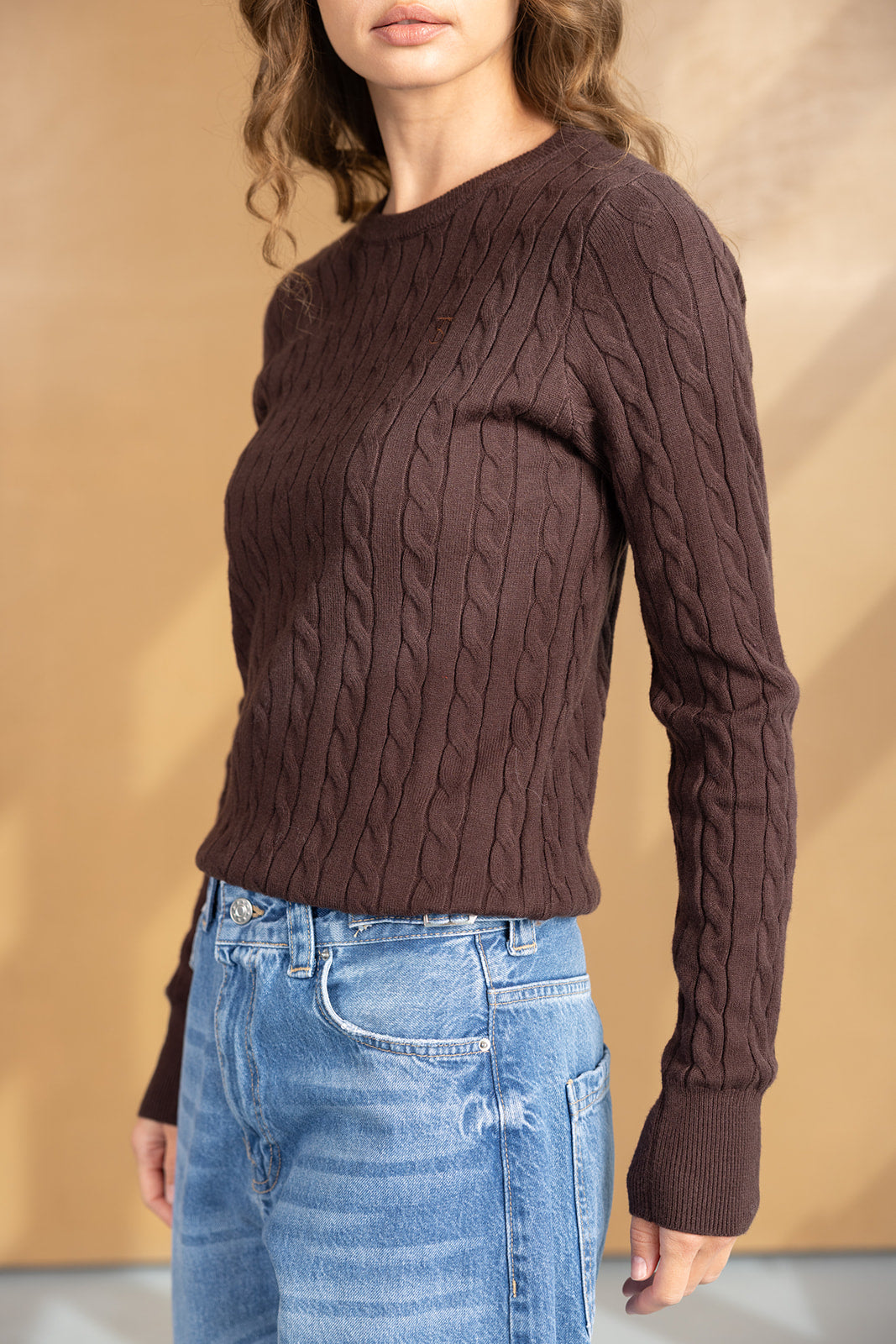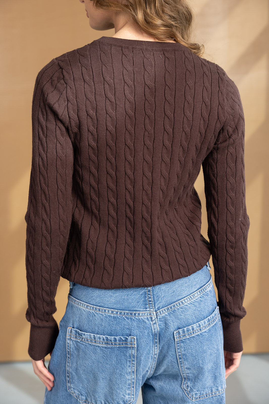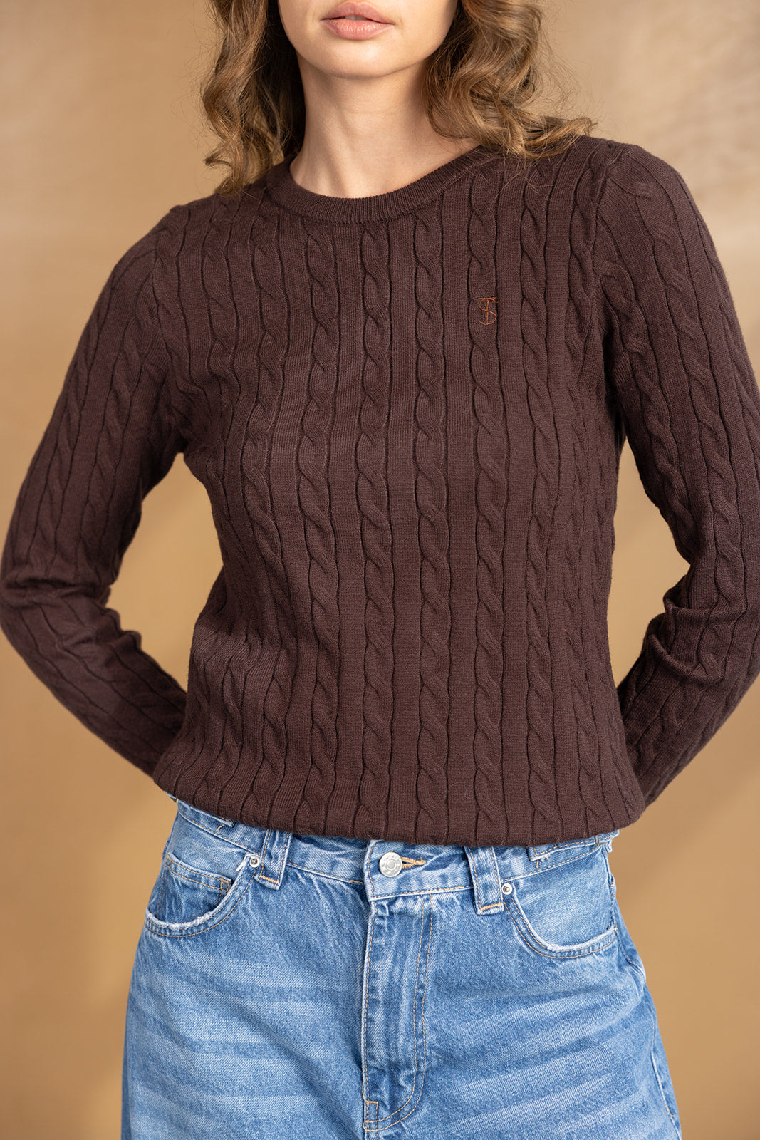 סריג מבד מחמם המתאים לעונה, בעל דוגמת צמות עדינה שמוסיפה טקסטורה ונגיעה אלגנטית.