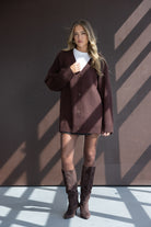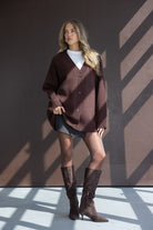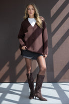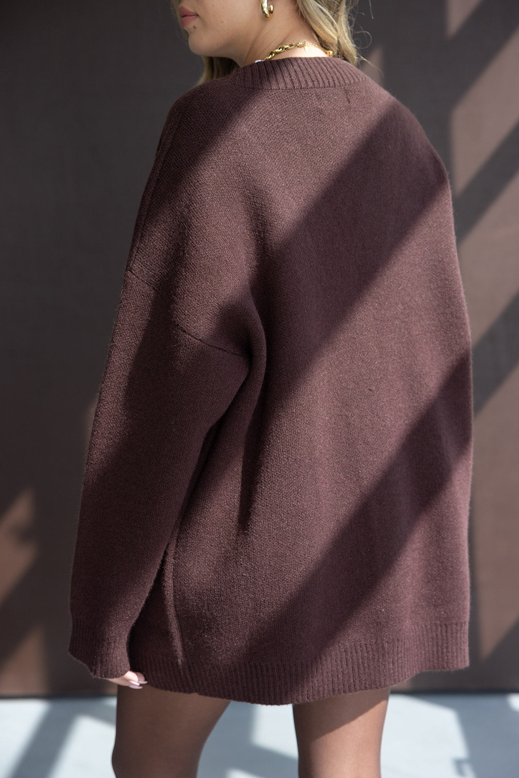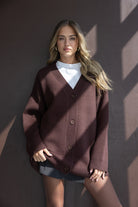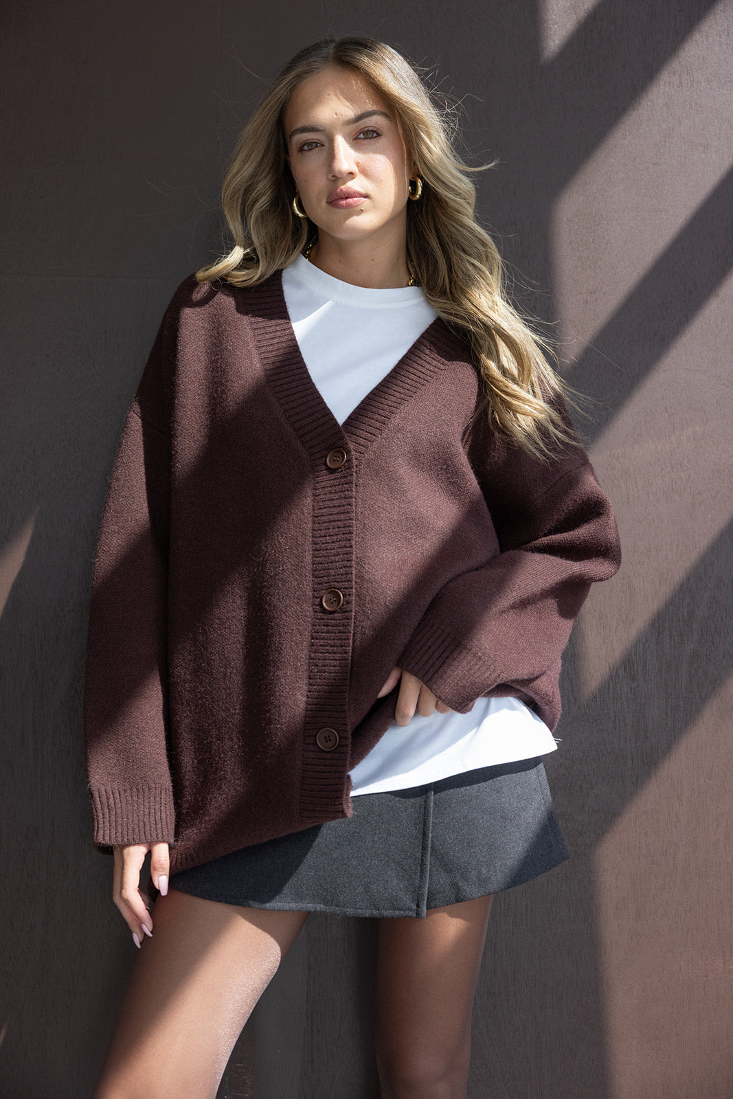 קרדיגן סריג רך בגזרה משוחררת, עם מפתח וי עמוק וכפתרה קדמית. מראה נקי וקלאסי