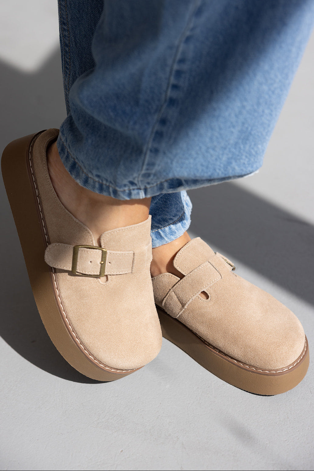 נעליים נוחות ביותר לעונה עשויות דמוי זאמש, בשילוב אבזם מתכוונן וסוליה שטוחה לנוחות מקסימאלית.