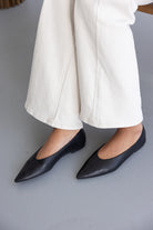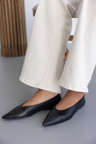 נעלי בובה אלגנטיות עשויות דמוי עור, בשילוב סיומת שפיץ.