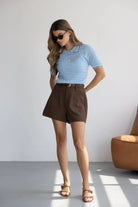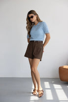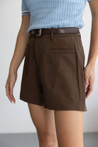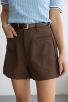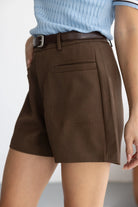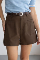 מכנסיים קצרים מבד איכותי בגזרה ישרה, בשילוב זוג כיסים קדמיים בולטים וסגירת רוכסן עם כפתור.