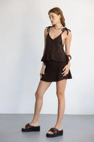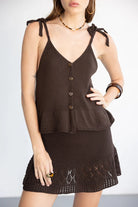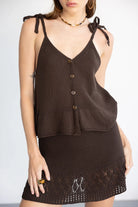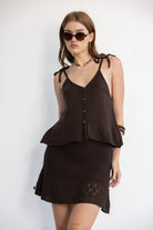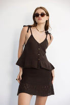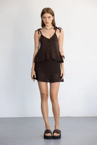 חצאית מיני מבד סריג נעים ביותר בשילוב סיומת קרושה מעוטרת.