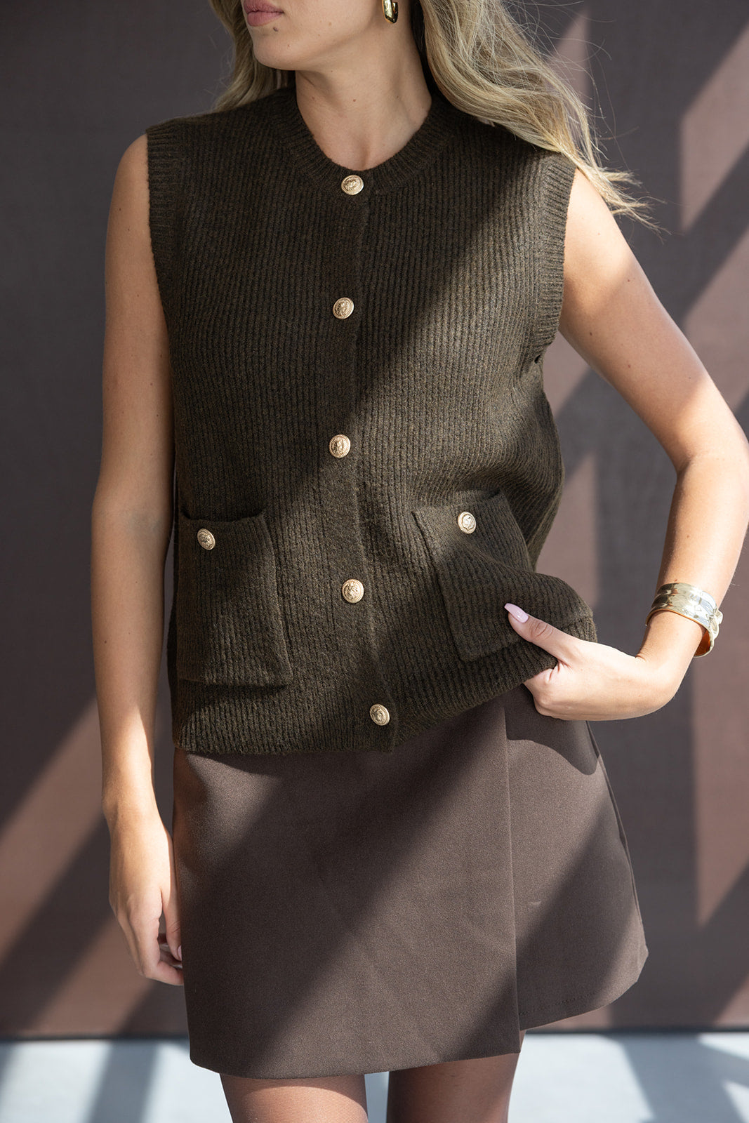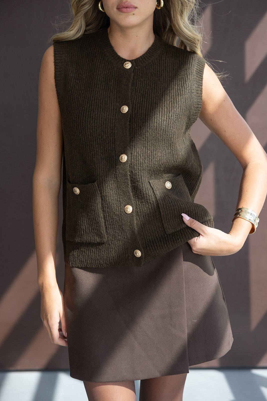 חצאית צמר מיני בשילוב כפתור ורוכסן להתאמה. בד נעים ואיכותי ביותר המעניק מראה קלאסי.
