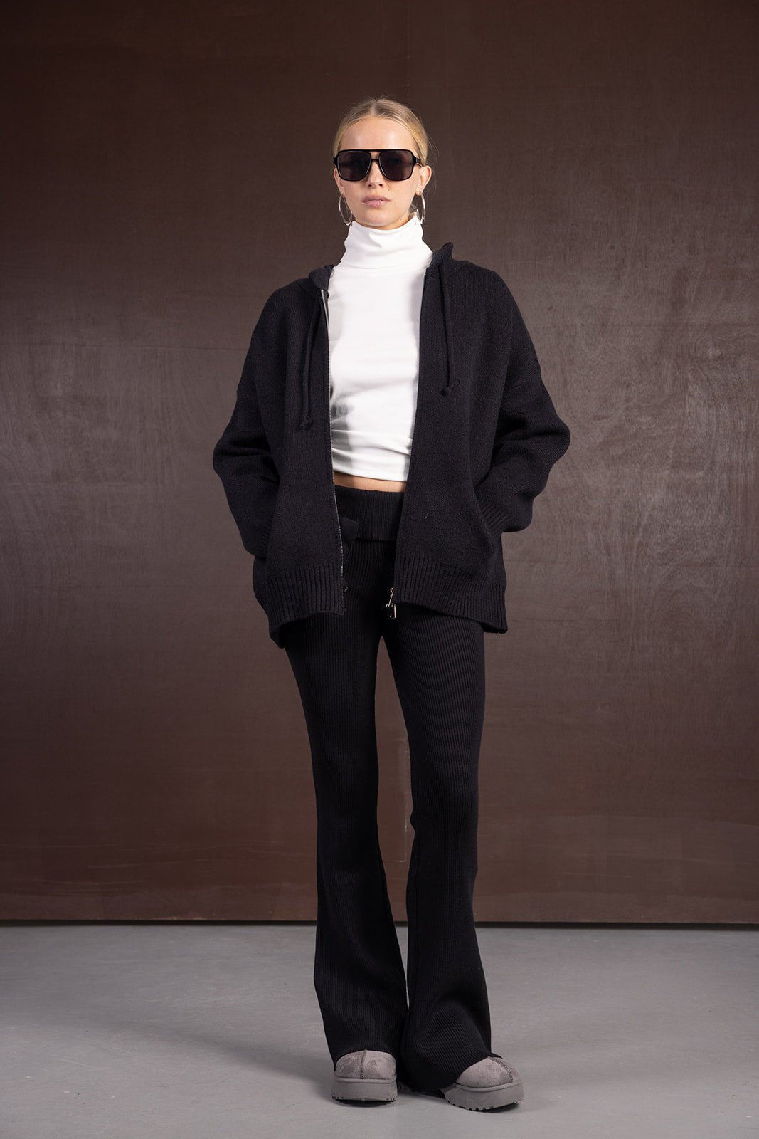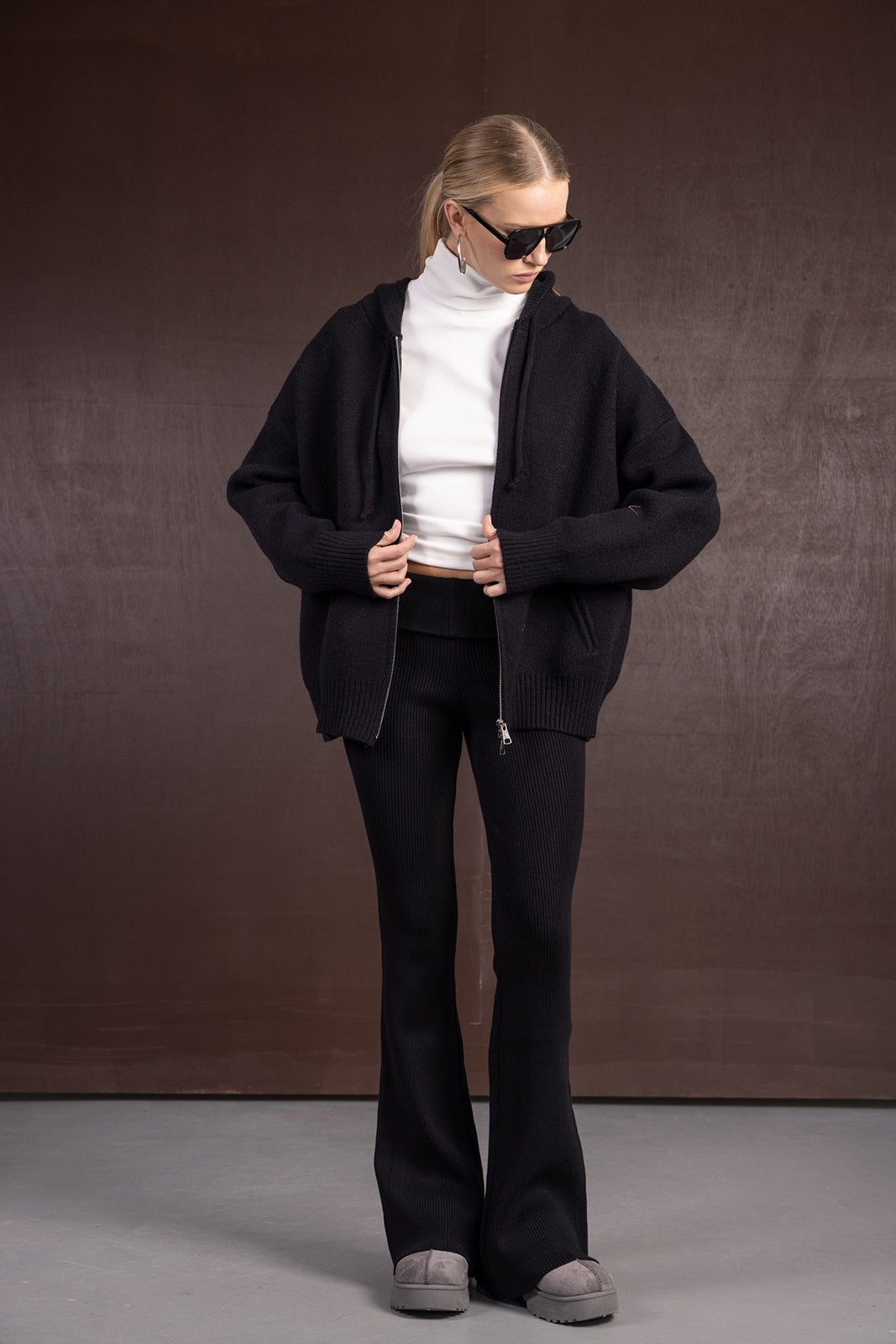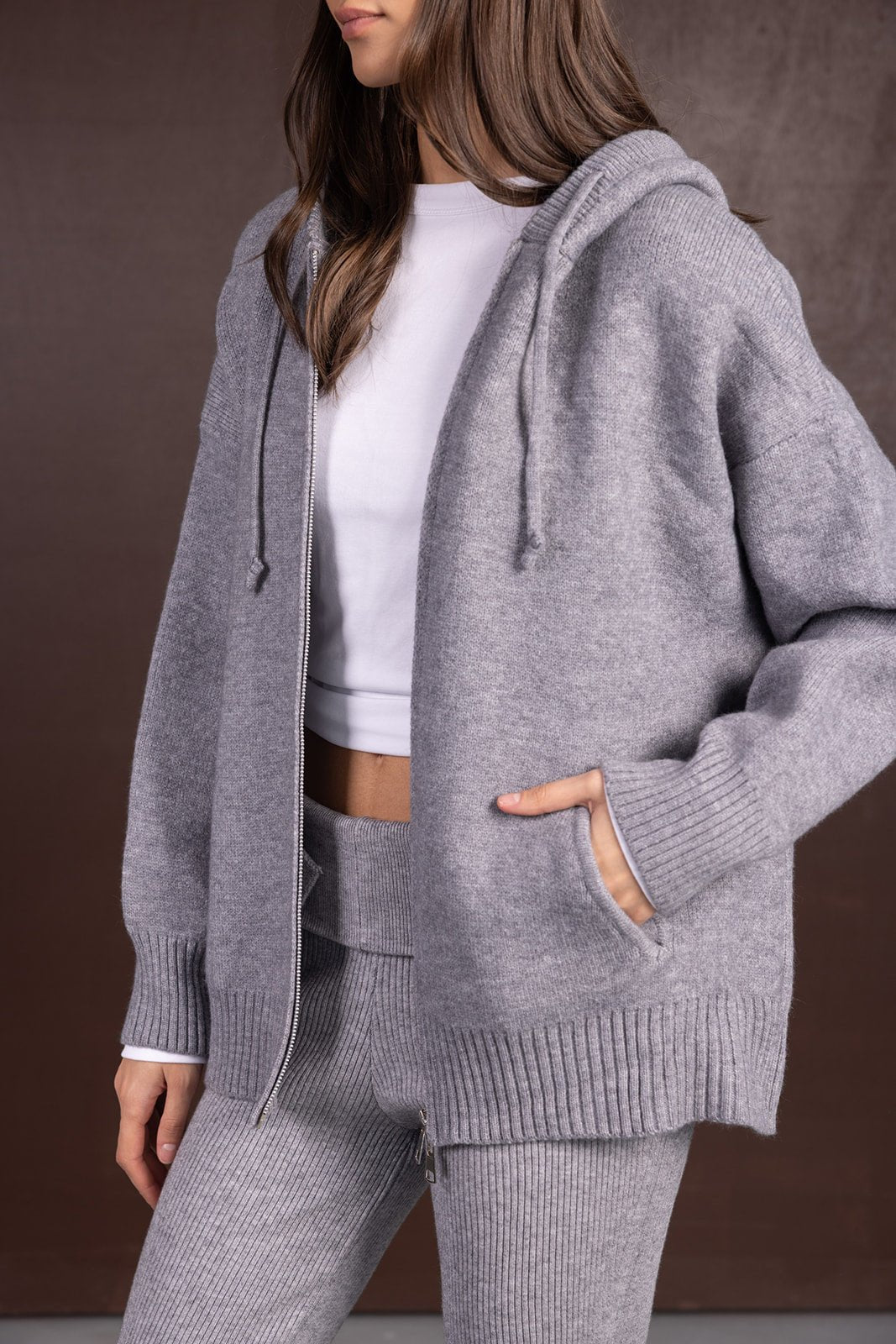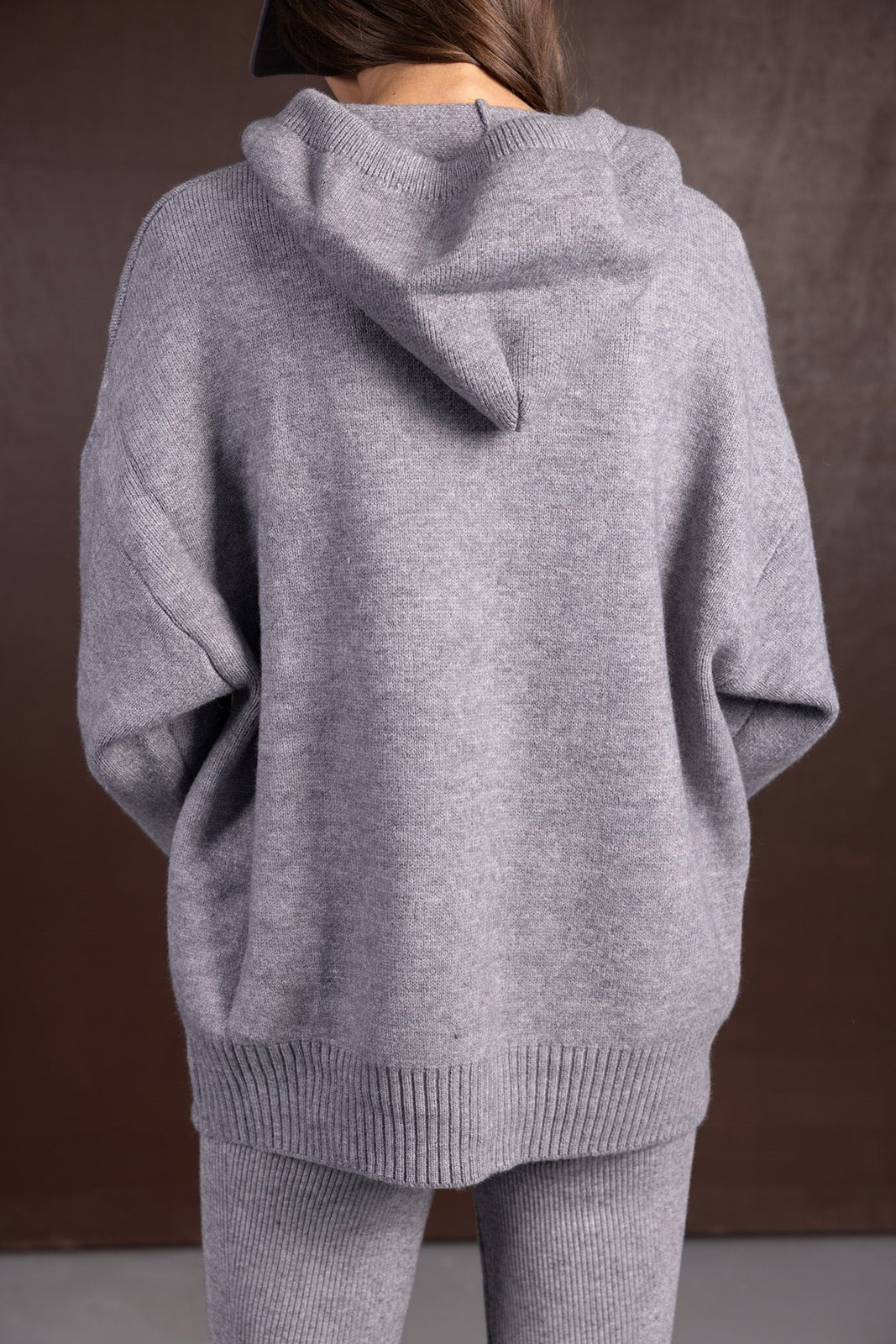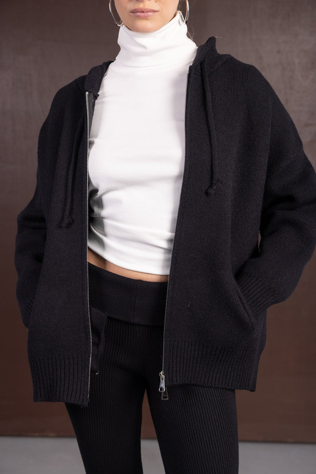 סריג מבד צמר מחמם ביותר לעונה ובגזרה משוחררת. בשילוב קופוצ'ון, זוג כיסים ורוכסן לסגירה.