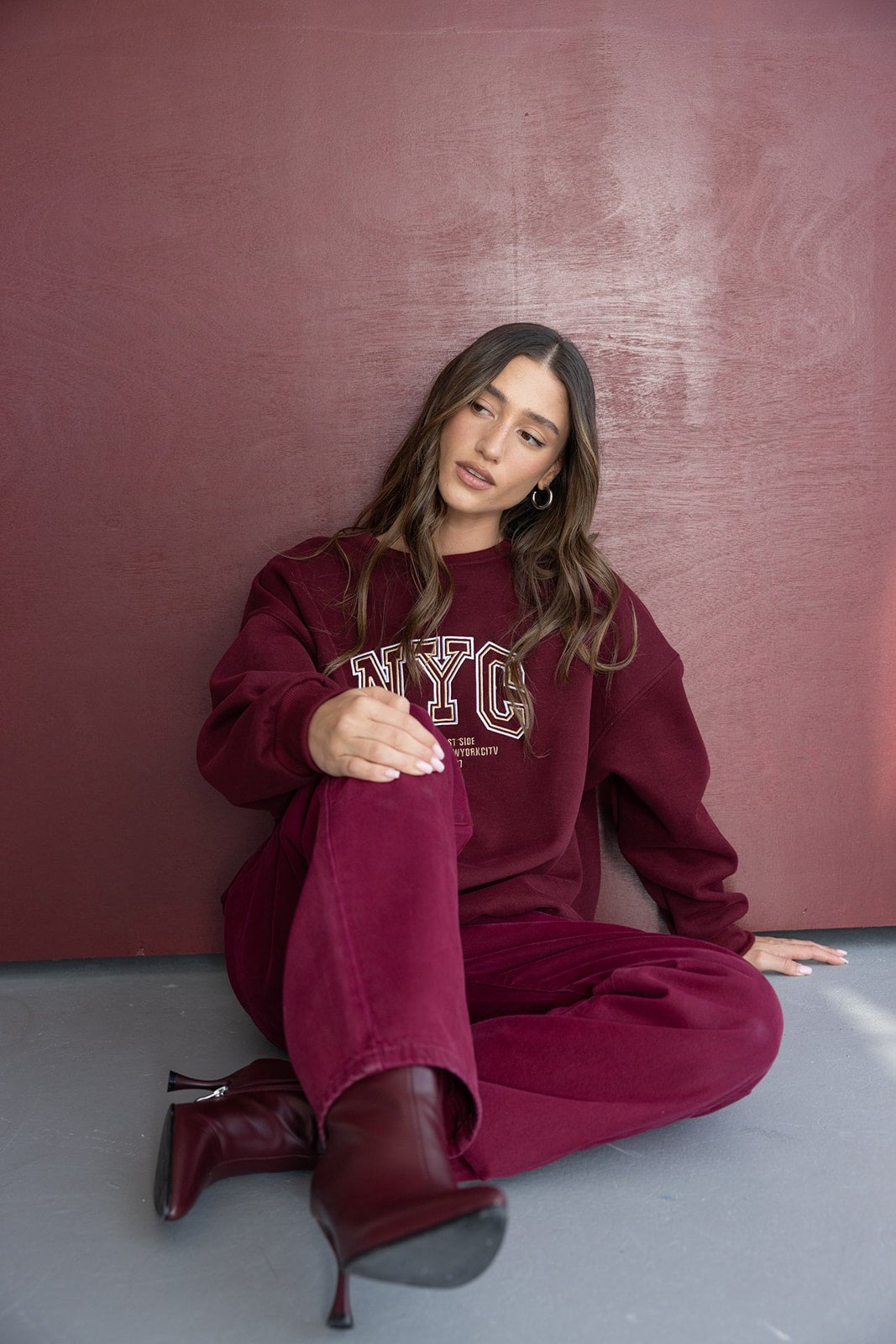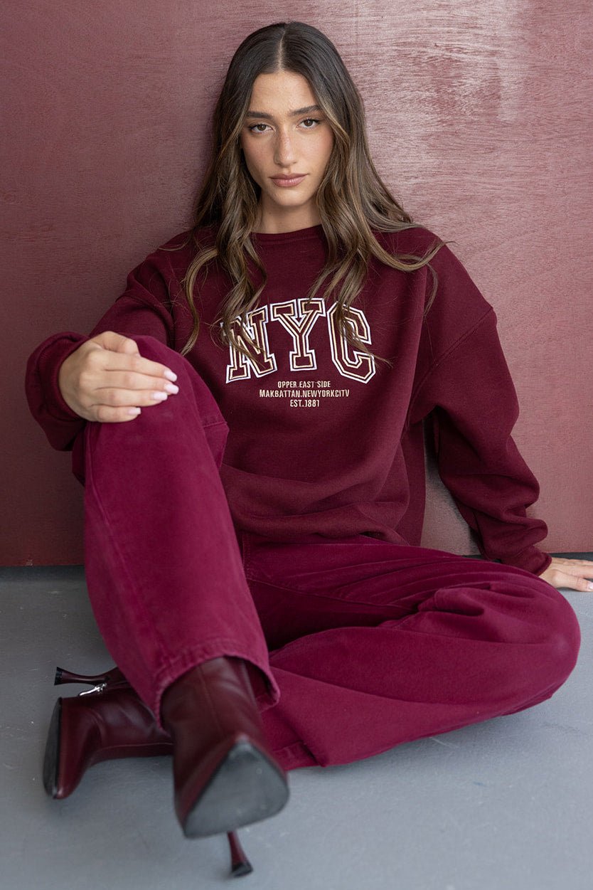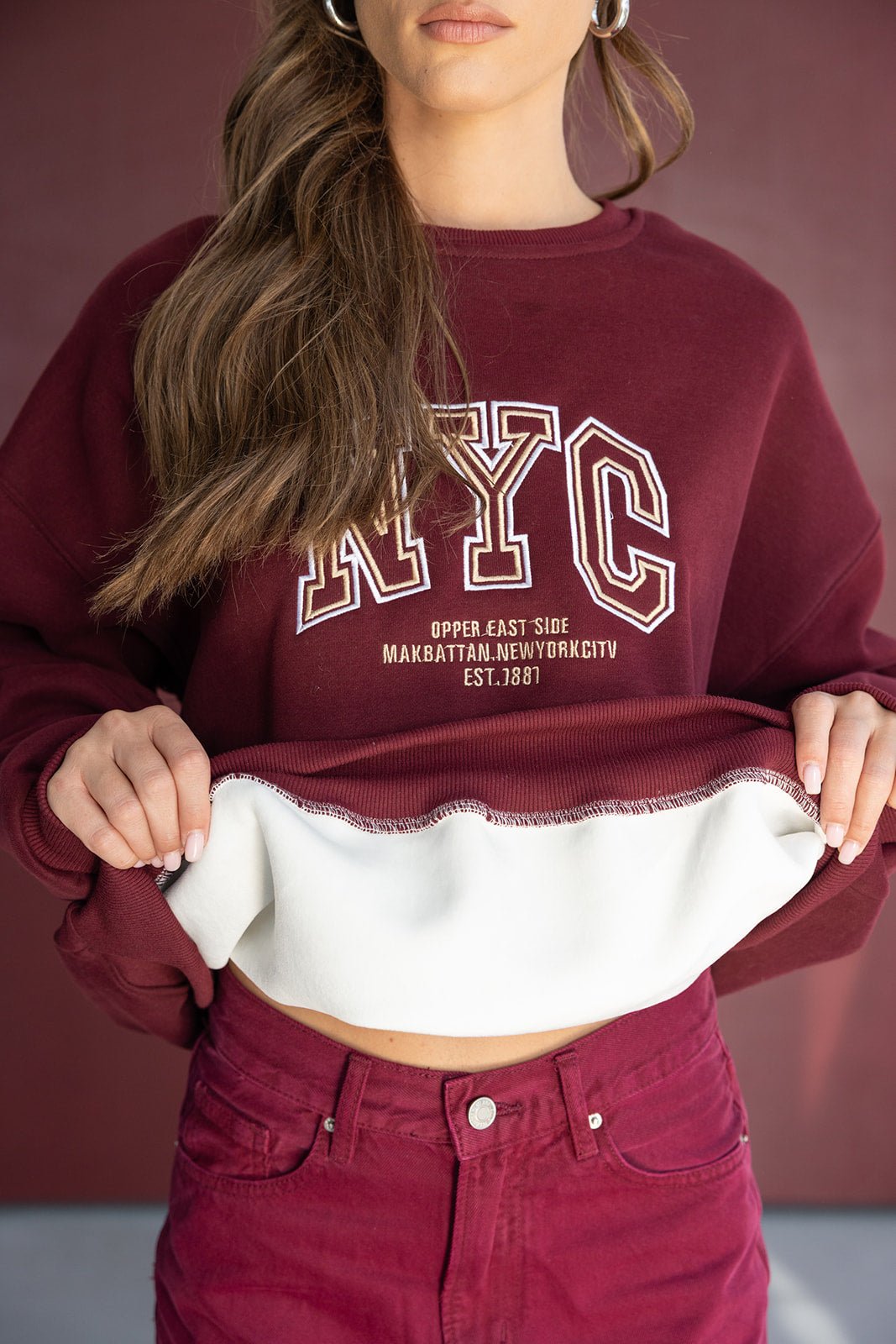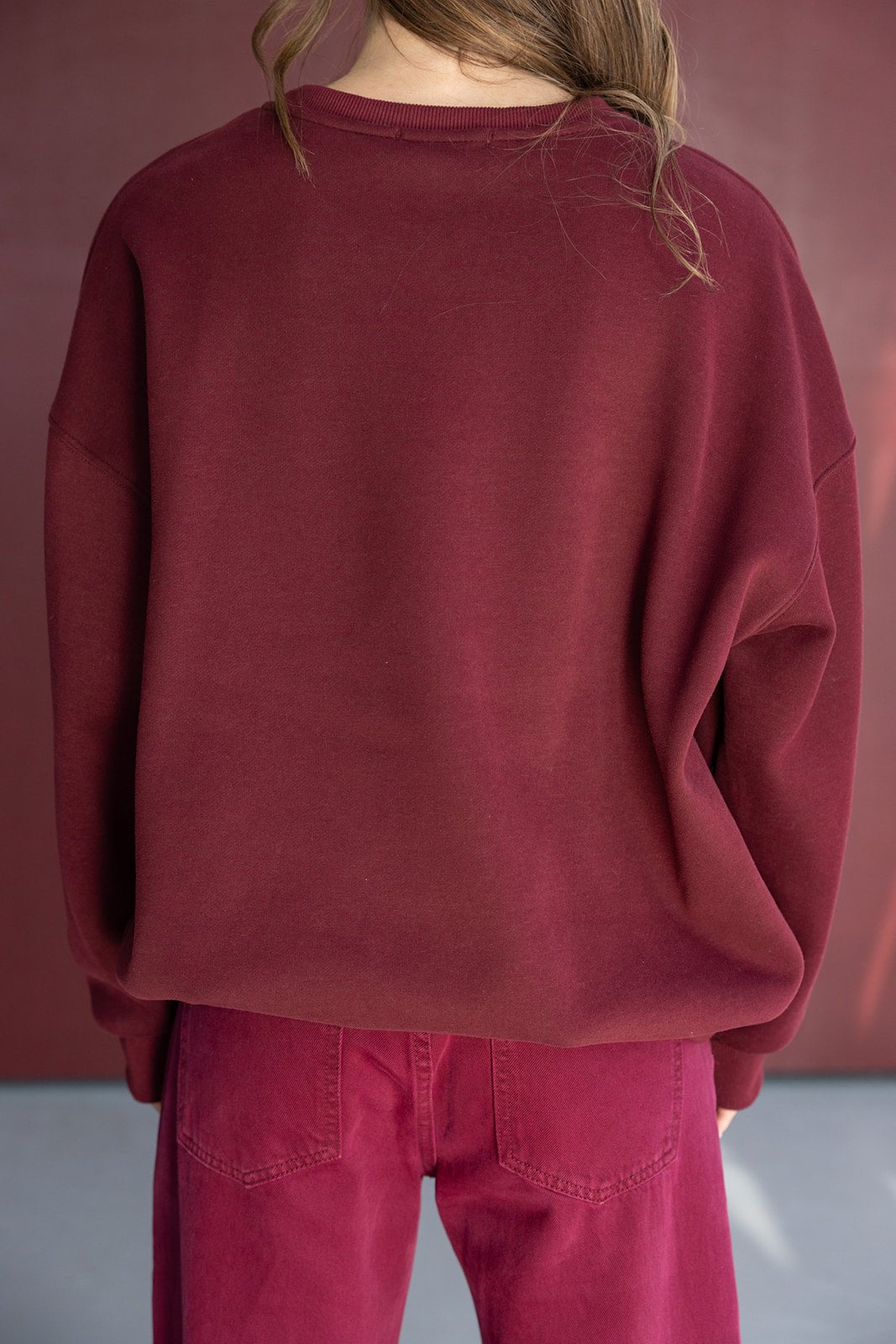 סווטשירט חמים בגזרה משוחררת ומחמיאה, בשילוב רקמה טרנדית בחלק הקדמי של הסווטשירט.