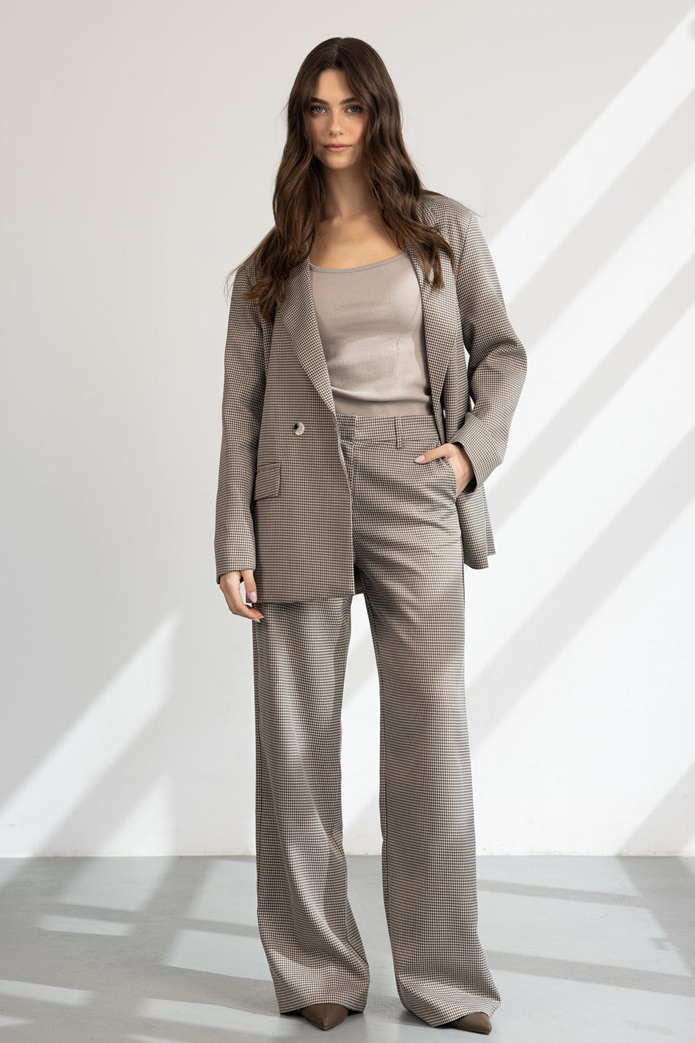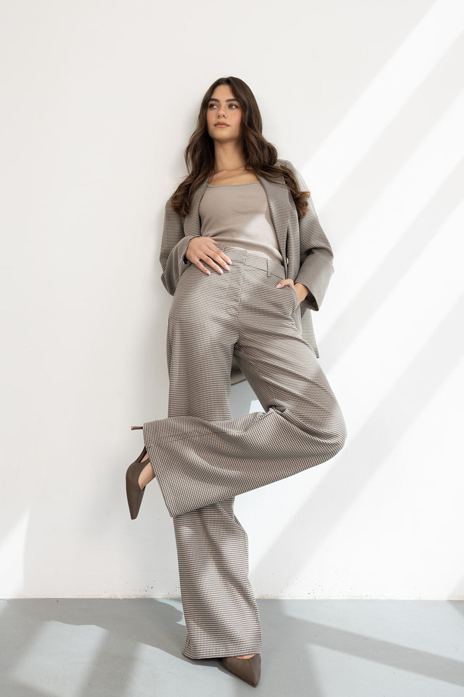 מכנסיים בגזרה רחבה עם מותן גבוהה וגזרה נשפכת ונוחה. מעוצבים בקווים נקיים שמעניקים מראה מחויט ואלגנטי.