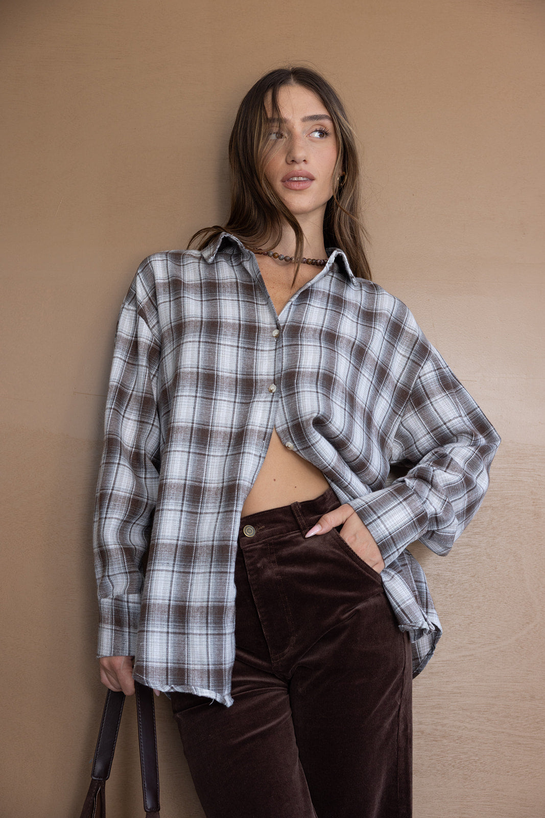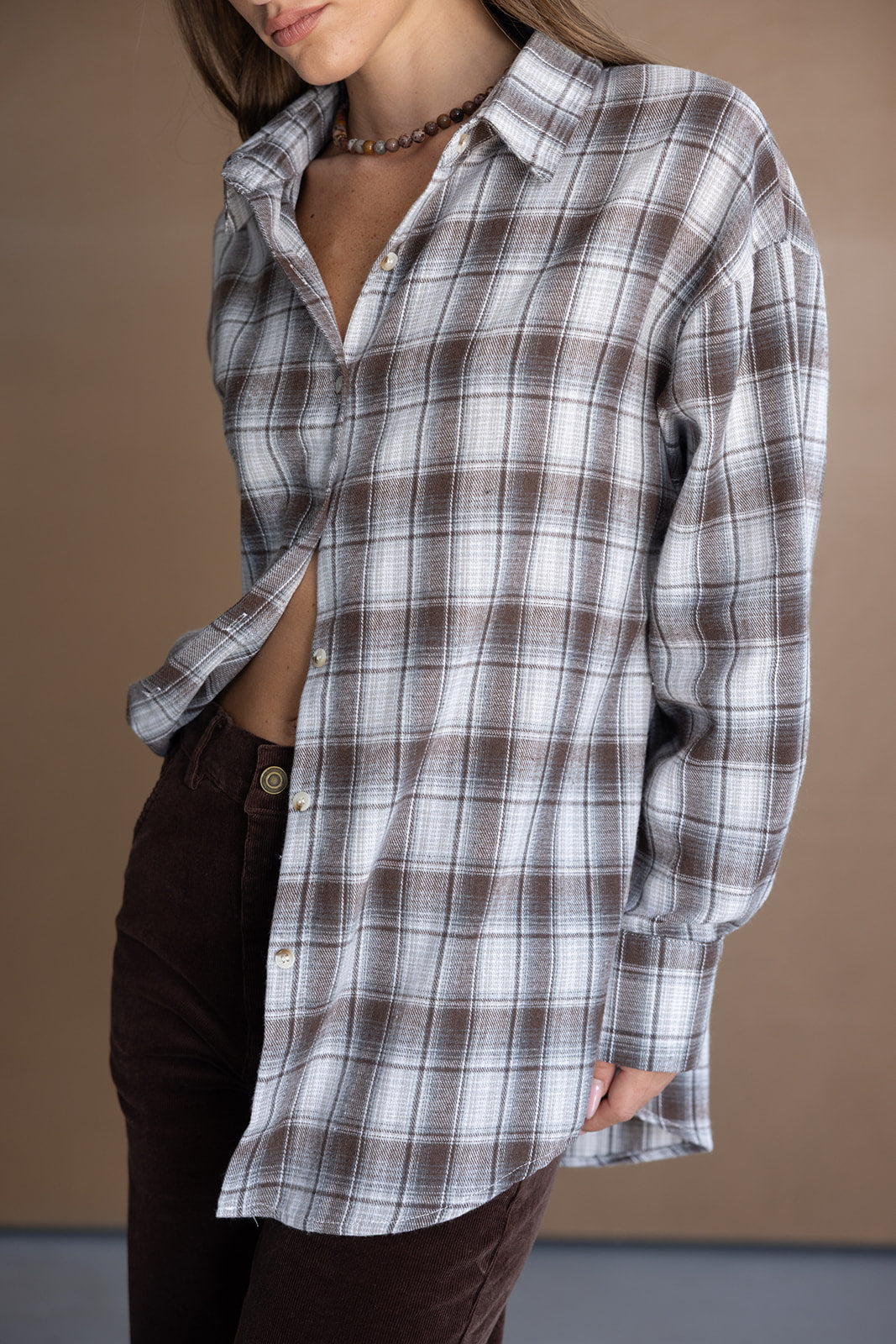 חולצה מכופתרת בגזרה משוחררת ומחמיאה. בשילוב דוגמת משבצות טרנדית לעונה, כפתורים לאורך החולצה וצווארון קלאסי ובד נעים ביותר.