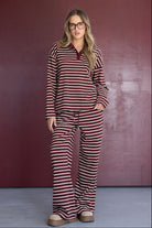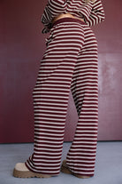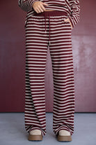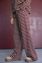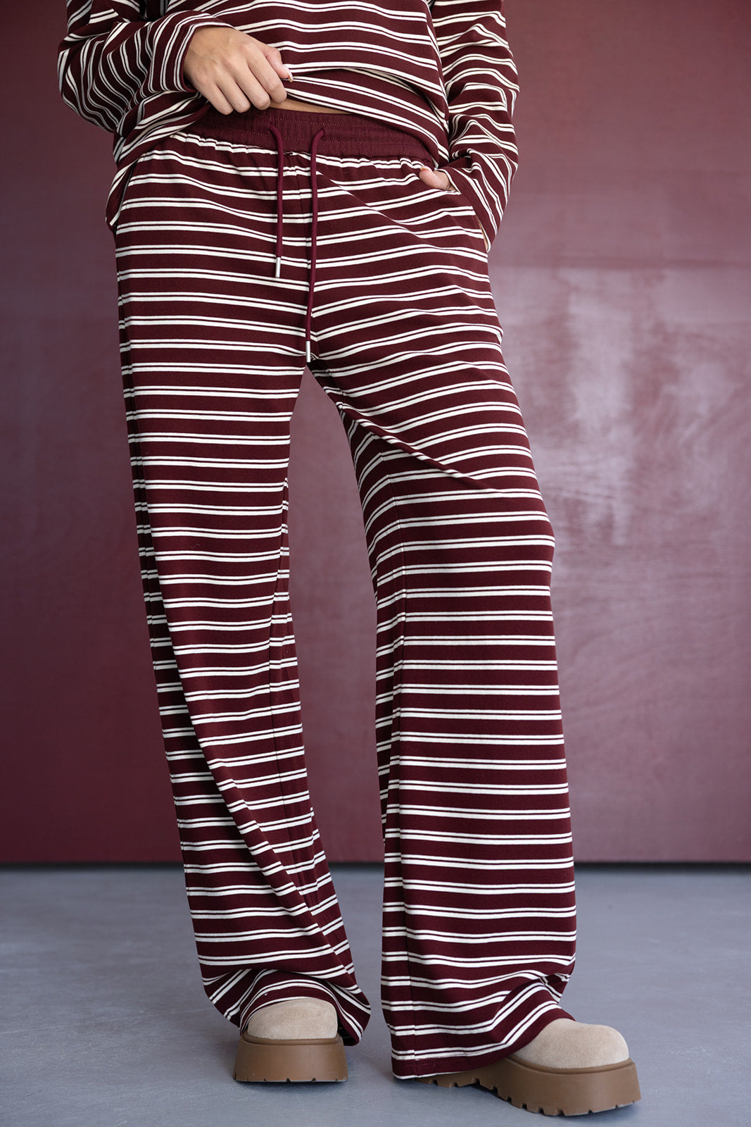 מכנס ארוך מבד נוח ונעים למגע, בגזרה ישרה ומשוחררת. למכנס גומי במותן, שרוכים לקשירה ושני כיסים קדמיים לנוחות מקסימלית. בשילוב דוגמת פסים לרוחב המכנס.