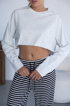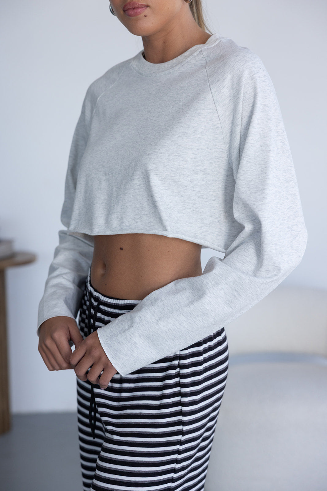 חולצת בייסיק בגזרת קרופ מחמיאה המגיעה בצבעים המדוייקים לעונה. בשילוב שרוולים ארוכים וצווארון ניקי עגול קלאסי.