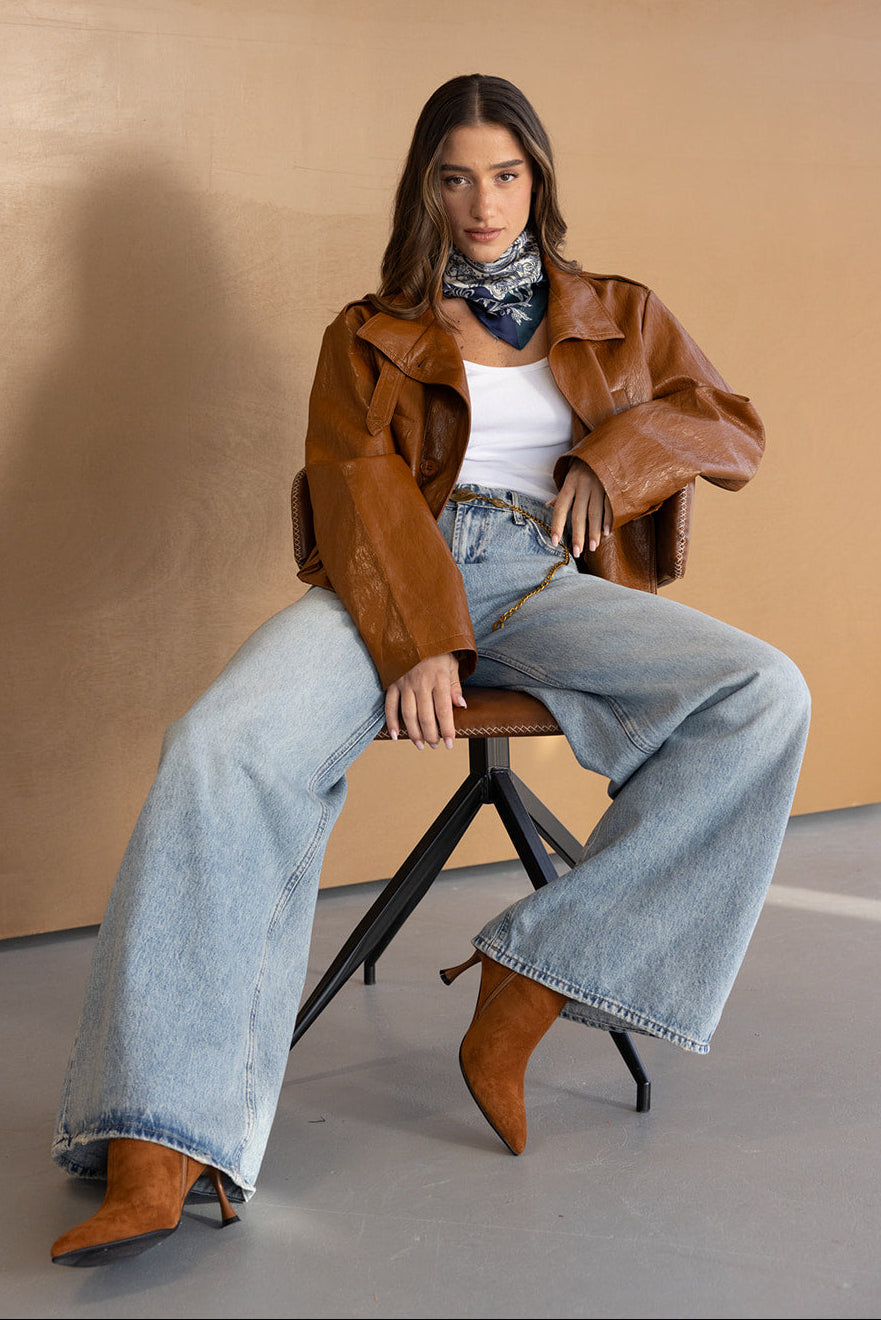 ג'קט דמוי עור קלאסי, בשילוב כפתורים. בד איכותי ביותר