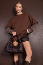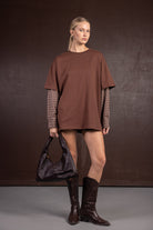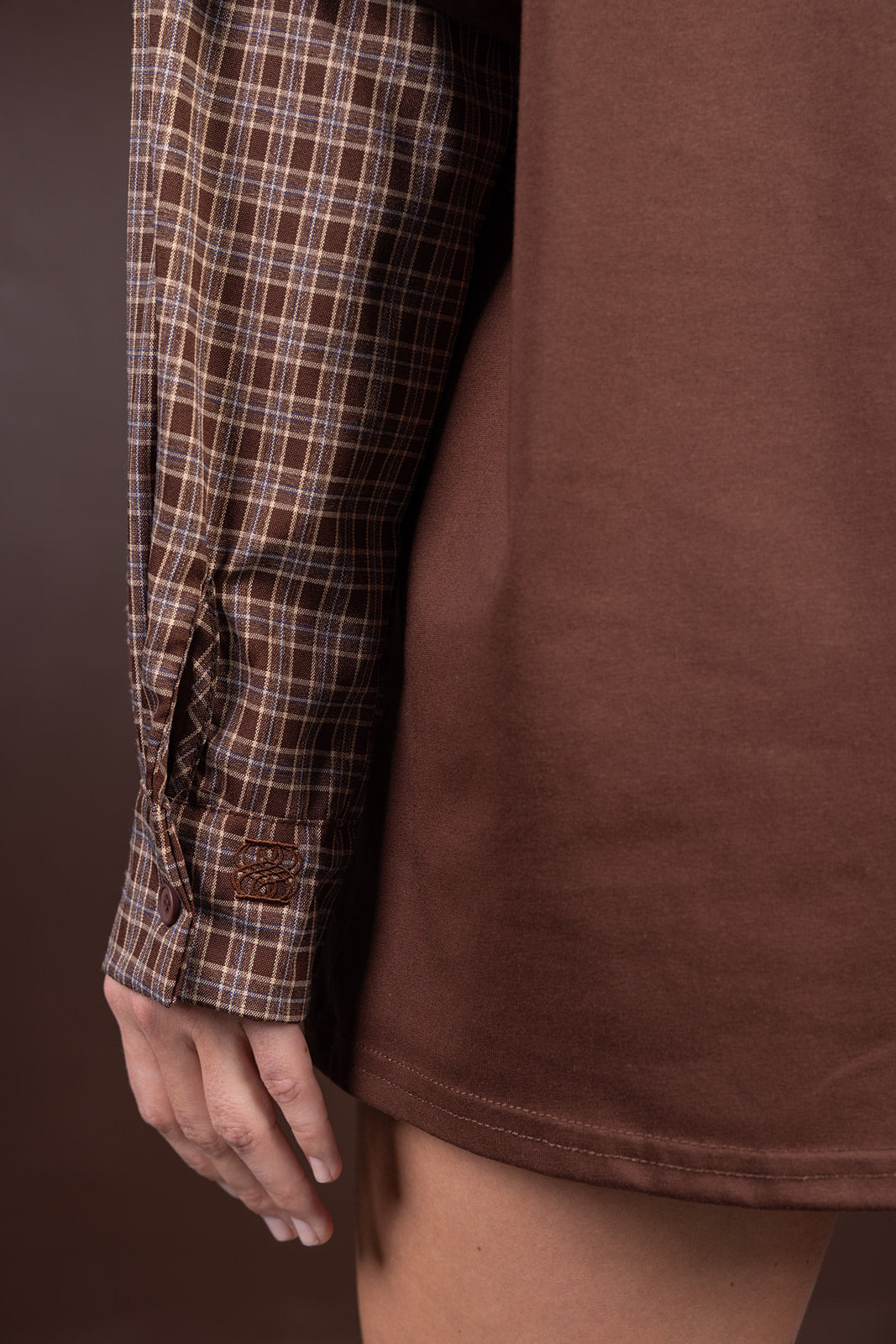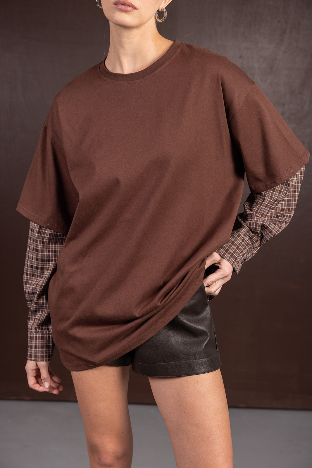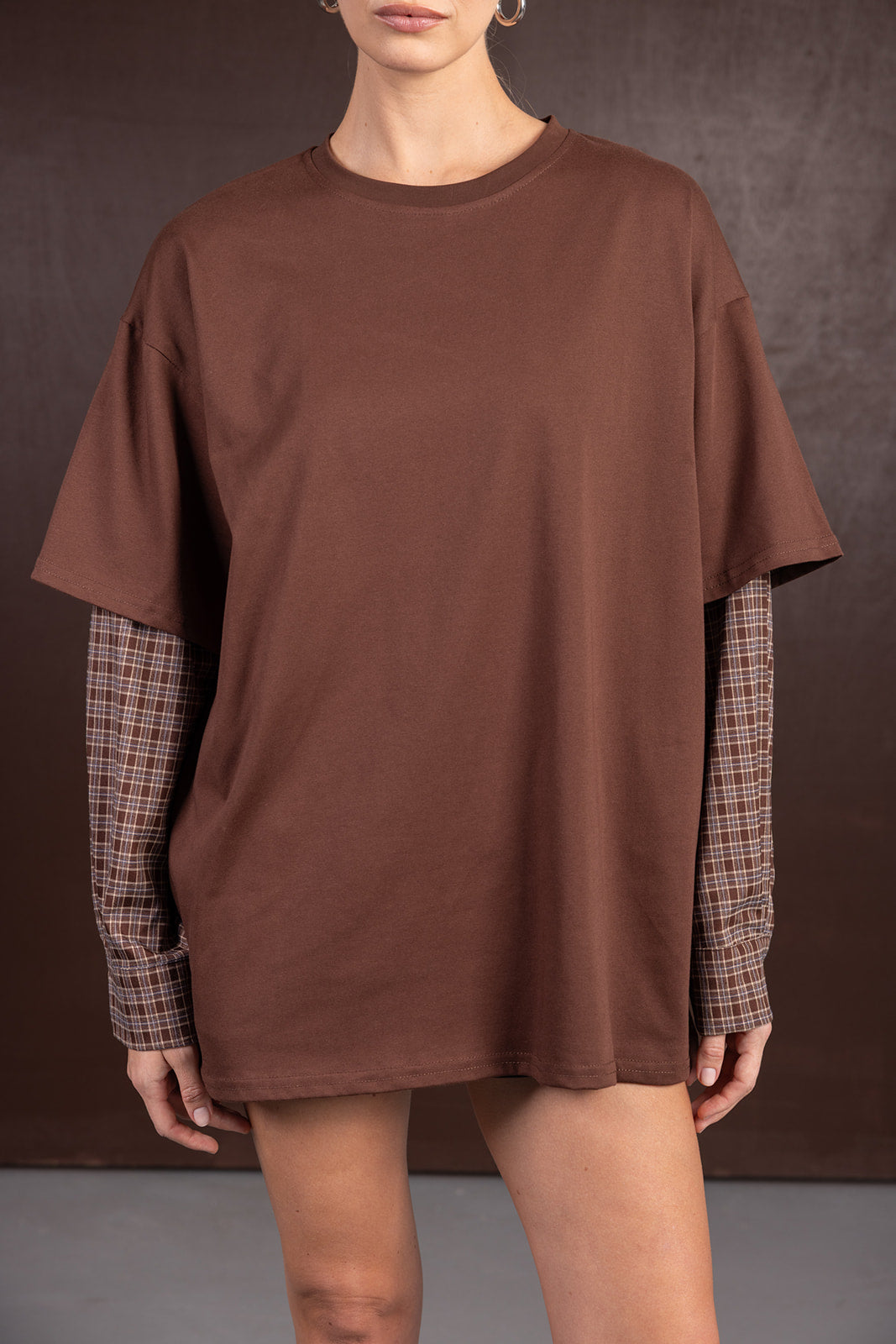 חולצת בייסיק בגזרה משוחררת ומחמיאה ביותר. בשילוב שרוולים ארוכים טרנדיים בדוגמת משבצות החמה של העונה.