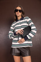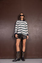 חולצת פולו בגזרה מעט משוחררת ומחמיאה, בשילוב הדפס פסים טרנדי לרוחב החולצה.