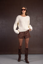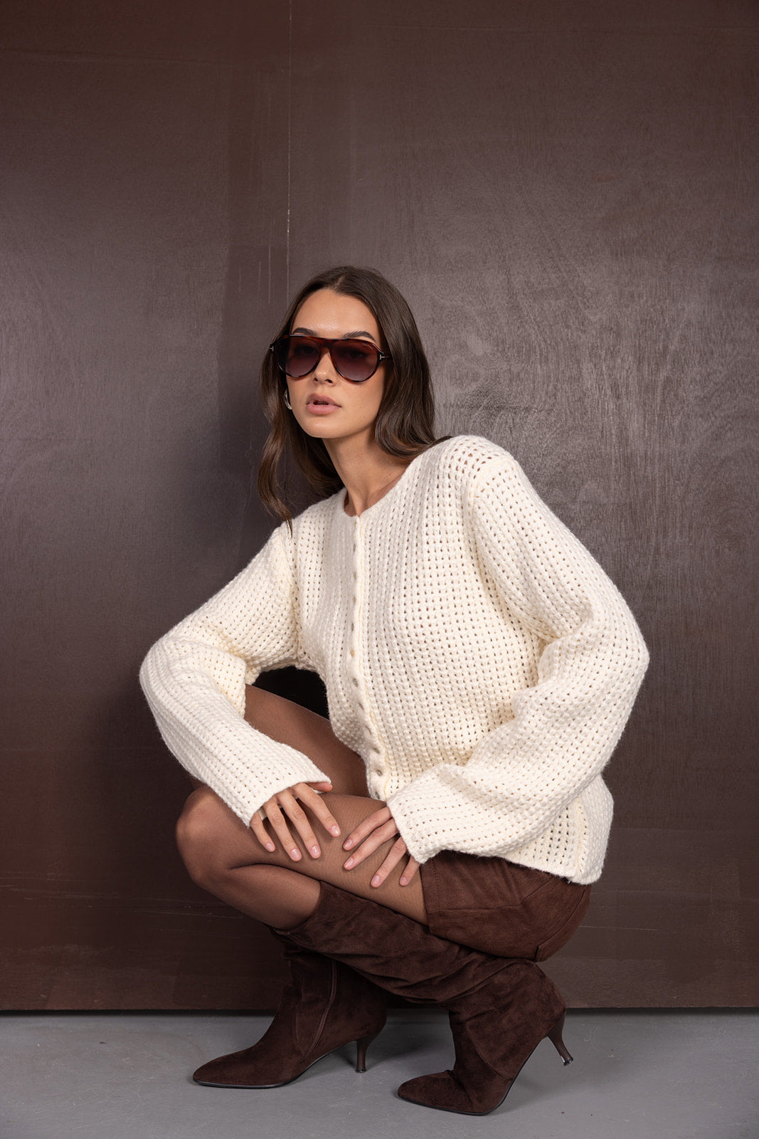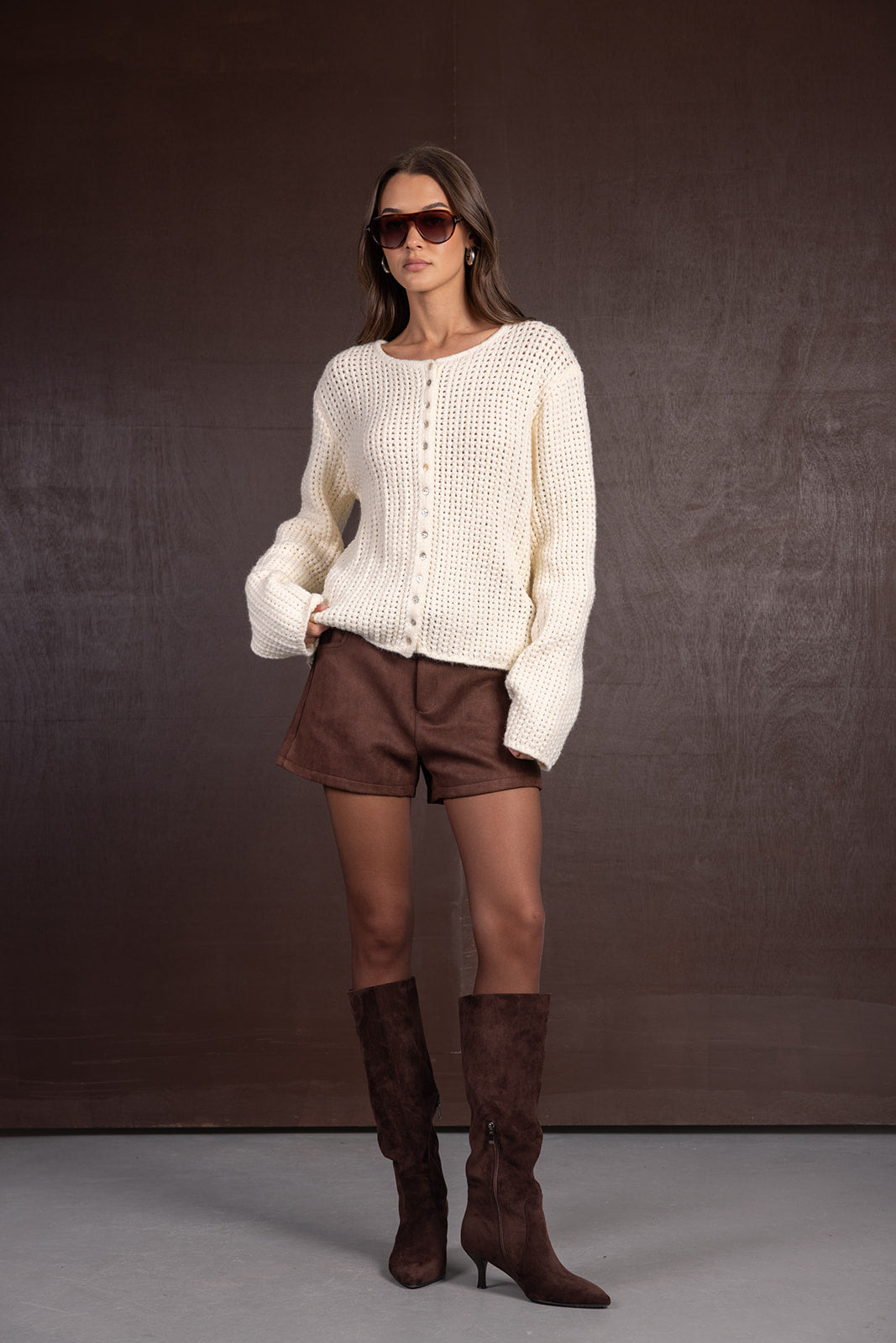 קרדיגן מבד נעים, מחמם ונוח ביותר לעונה. בשילוב כפתורים לאורך הקרדיגן וטקסטורה סרוגה עבה.