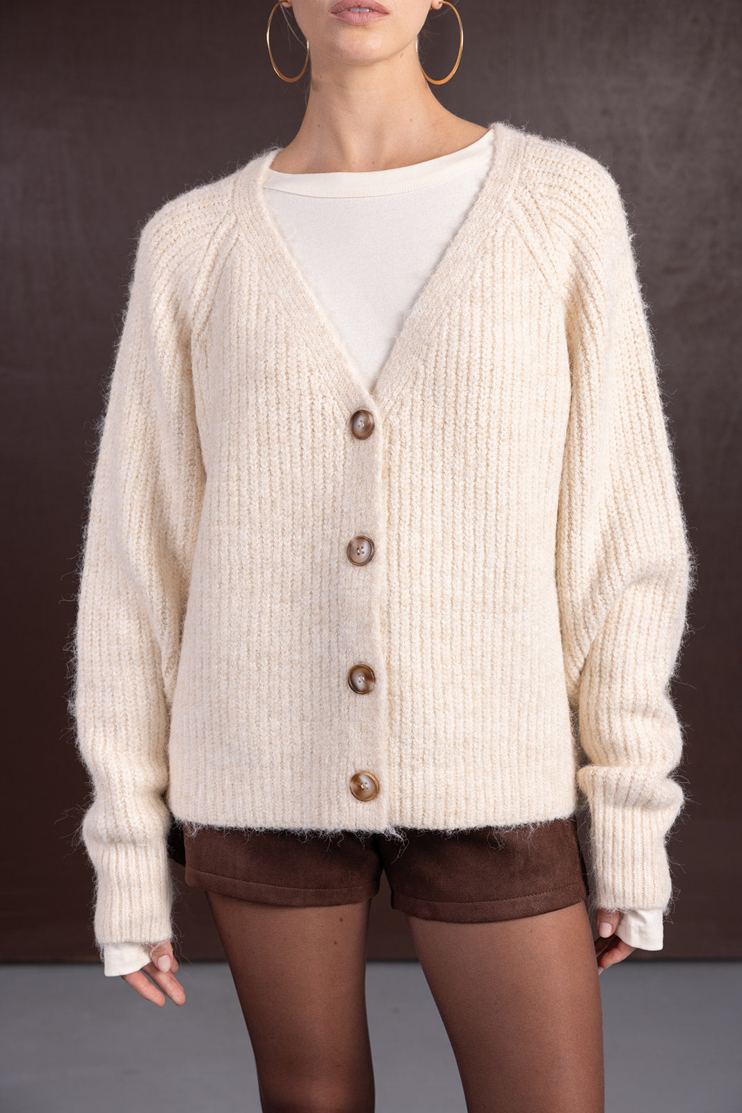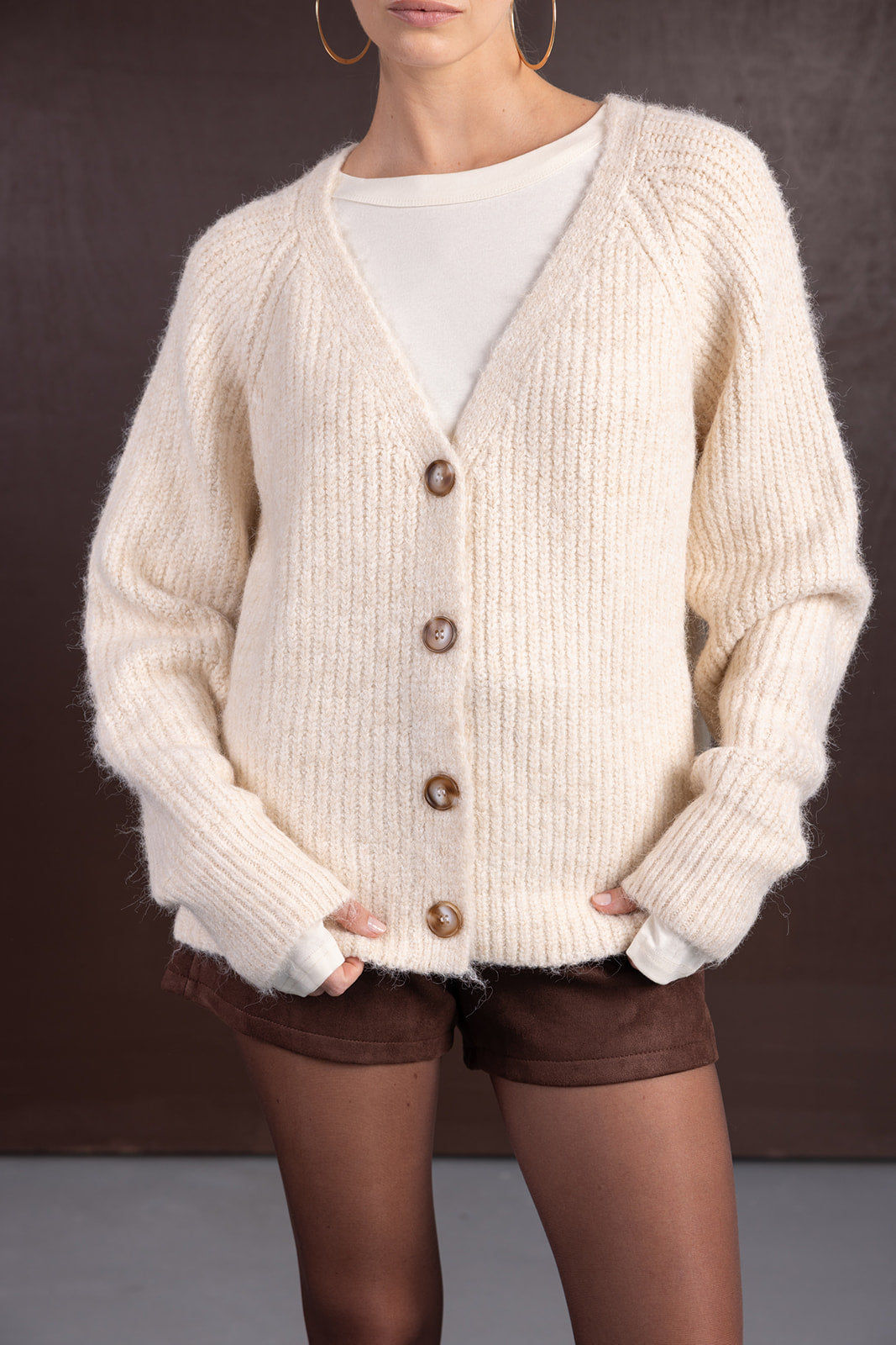 קרדיגן חמים ונעים ביותר, בגזרה ישרה קלאסית ומחמיאה ופתח וי עמוק. בשילוב כפתורים לאורך הקרדיגן.
