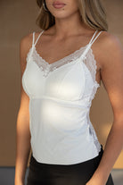 גופייה מבד חלק ונעים ביותר, בשילוב כתפיות דקות, קאפים למראה מחמיא ותחרה בחלק קדמי ואחורי. גב הגופייה שקפקף למראה טרנדי.
