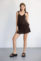ניתן לשלב עם חצאית הדסון חום כהה שלנו.