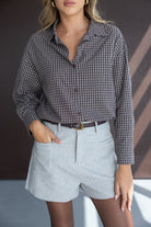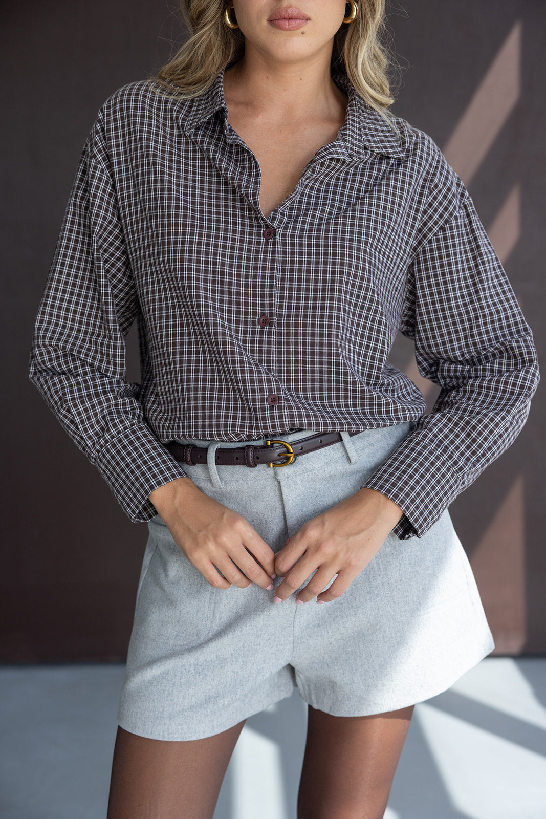 חולצה מכופתרת קלאסית וטרנדית כאחד, בגזרה משוחררת ומחמיאה לגוף. בשילוב הדפס משובץ ובד נעים ואיכותי.