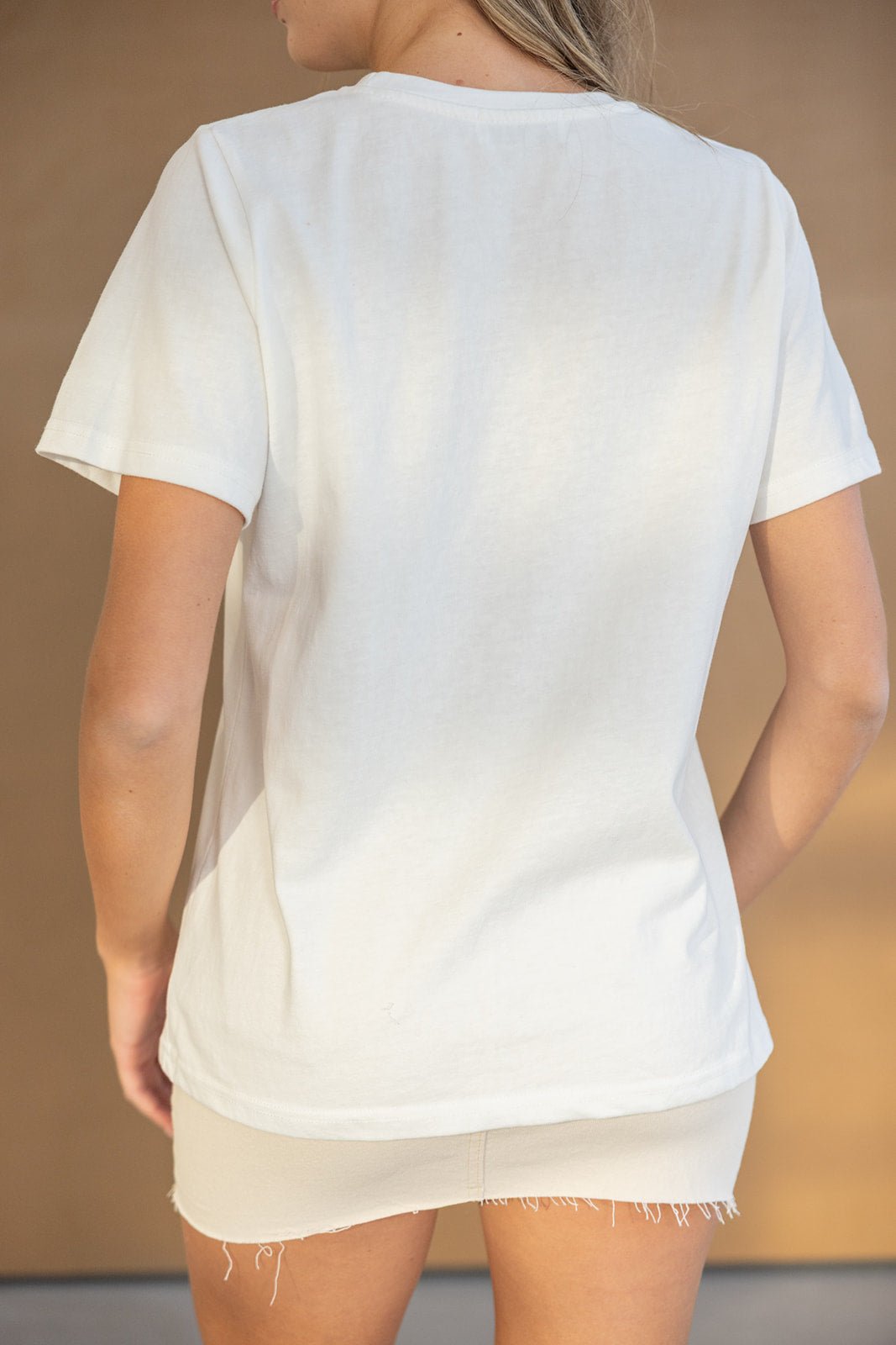 חולצת בייסיק מבד נעים ביותר ובגזרה מעט משוחררת, בשילוב הדפס טרנדי.