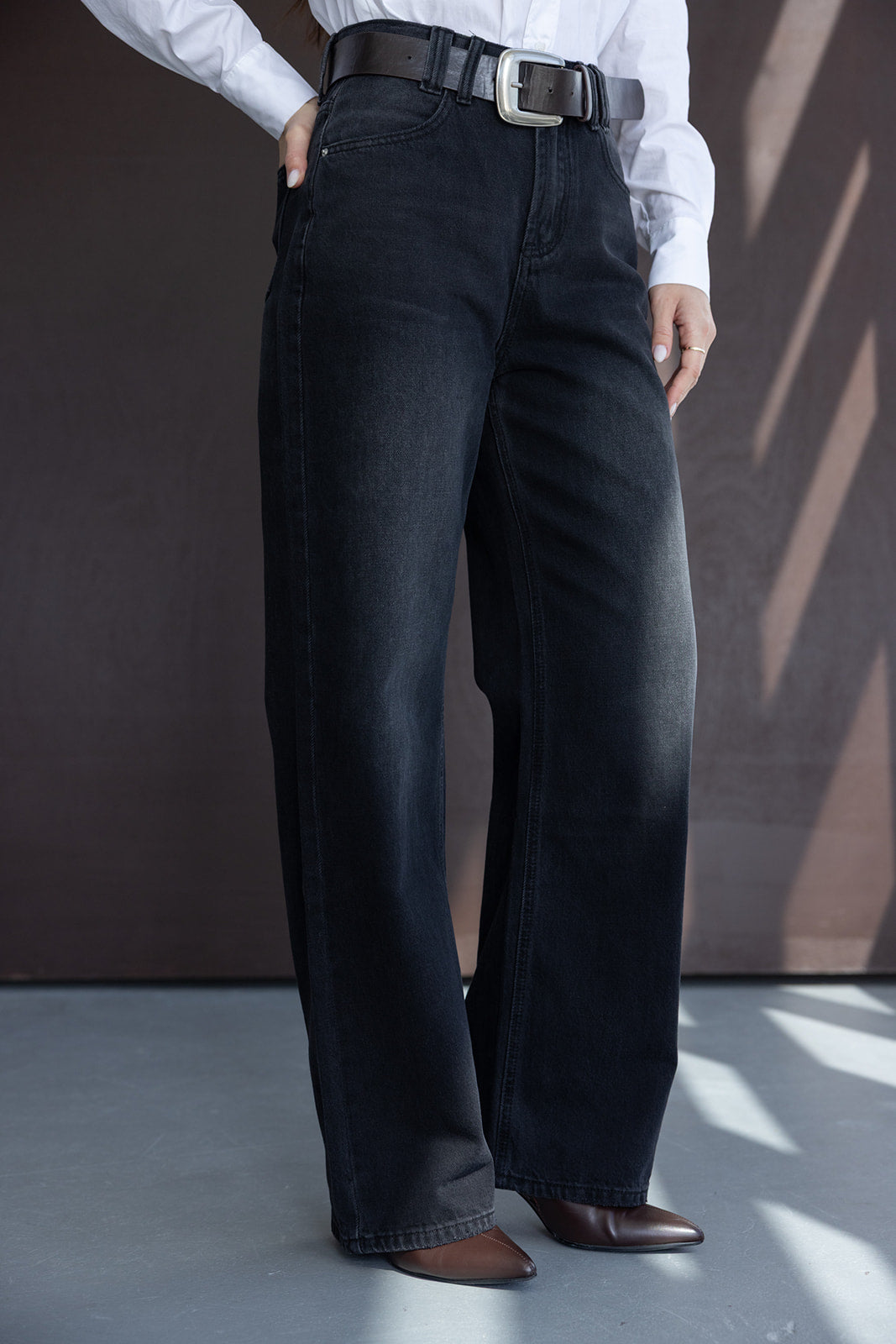 מכנס ג'ינס בגזרה רחבה וישרה, קלאסית ומחמיאה. בשילוב שני כיסים קדמיים ושני כיסים אחוריים.