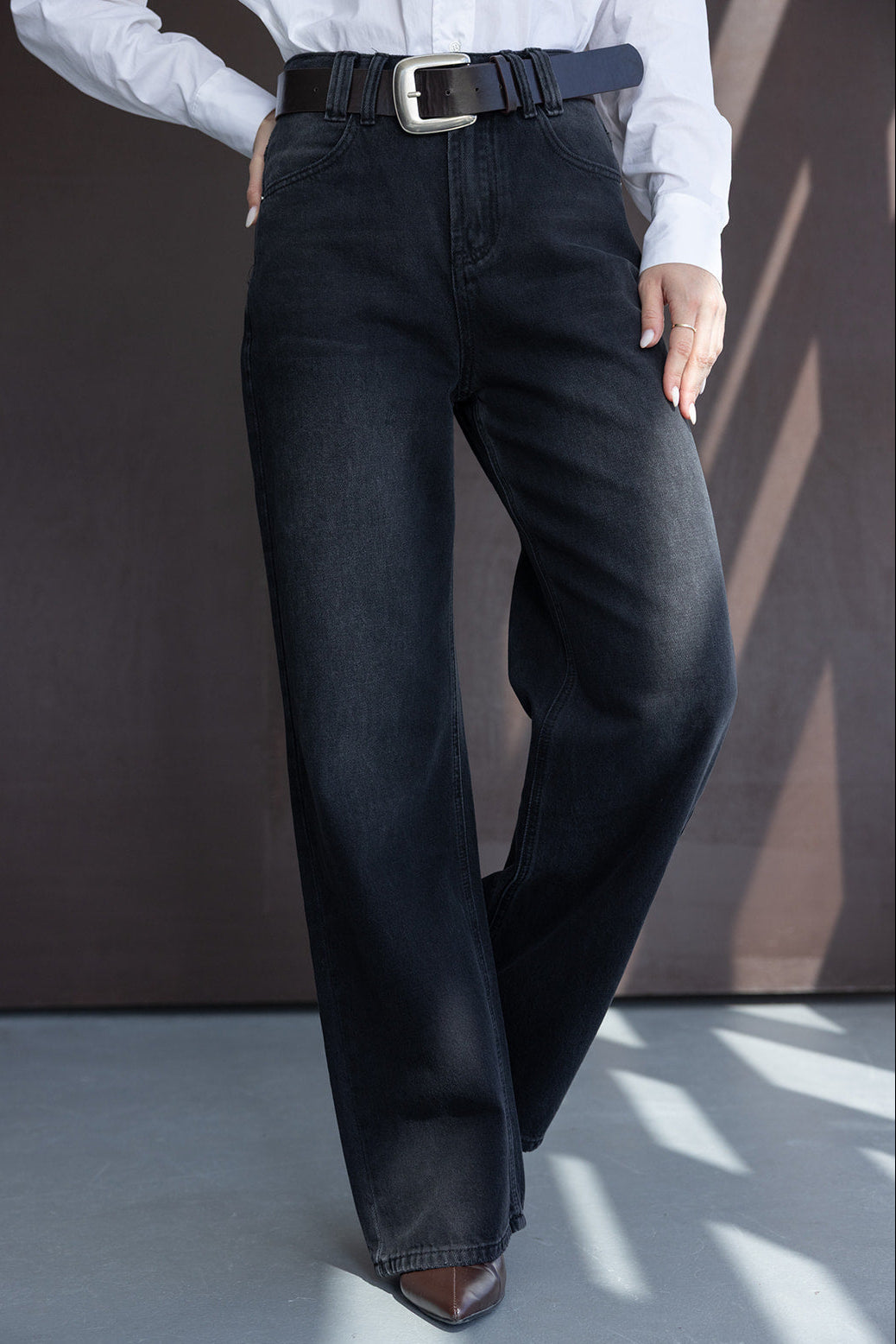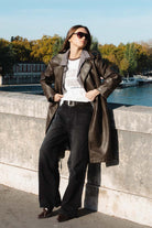 המכנס מגיע עם חגורת דמוי עור רחבה בשילוב אבזם כסוף.