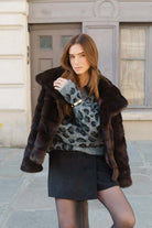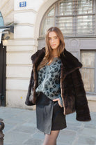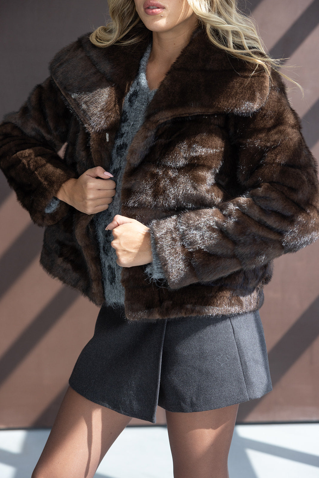 מעיל פרווה מלאכותית איכותית במראה יוקרתי וקלאסי.