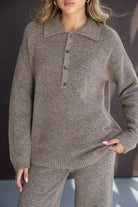 סריג איכותי בגזרה משוחררת ומחמיאה, בשילוב צווארון קלאסי וכפתורים.