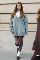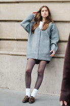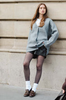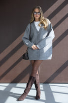 קרדיגן סריג רך בגזרה משוחררת, עם מפתח וי עמוק וכפתרה קדמית. מראה נקי וקלאסי