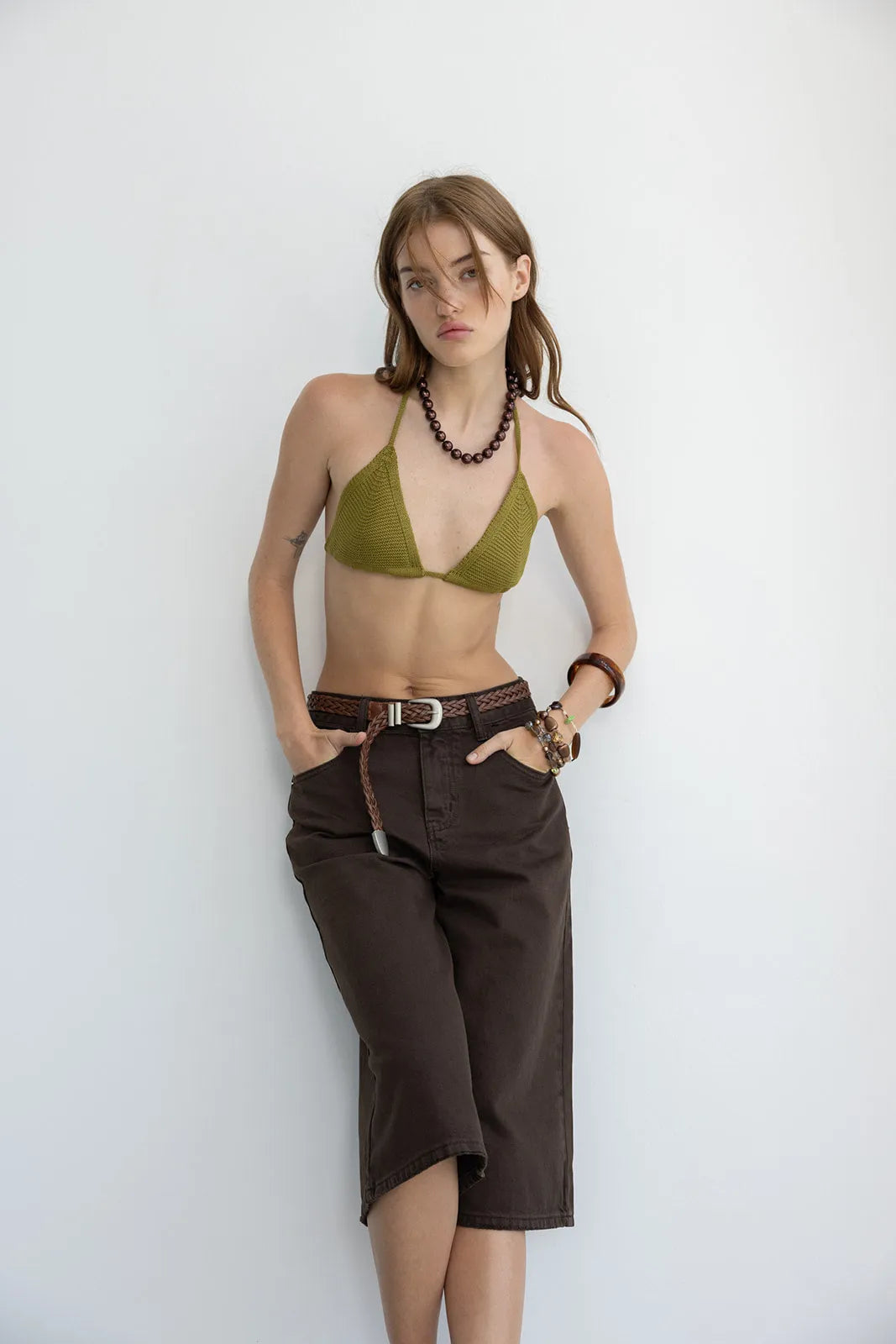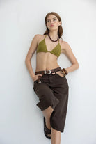 חזיית טופ מבד קרושה עדין עם בד כפול למראה נקי, מתאימה במיוחד להשלמת לוקים קיציים.