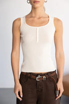 גופייה בגזרה צמודה ומחמיאה בשילוב של כפתורים עדינים בחלק העליון, מבד איכותי ונעים על הגוף.