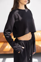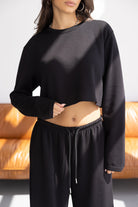 חולצה בגזרת קרופ מחמיאה מבד נעים ביותר. בשילוב שרוולים ארוכים וצווארון ניקי עגול קלאסי.