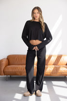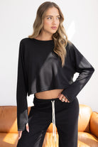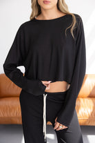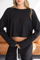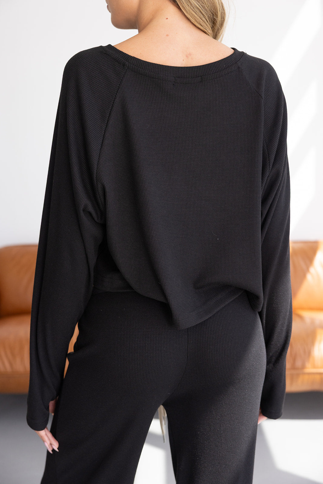 חולצה ארוכה בגזרת קרופ, נוחה ביותר מבד וופל נעים למגע, בגזרה ישרה ומשוחררת. לחולצה .שרוולים ארוכים המתאימים לעונה, צווארון עגול קלאסי וחור בשרוולים לכפפה