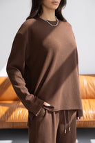 חולצה נוחה ביותר מבד וופל נעים למגע, בגזרה ישרה ומשוחררת. לחולצה שרוולים ארוכים המתאימים לעונה וצווארון עגול קלאסי.