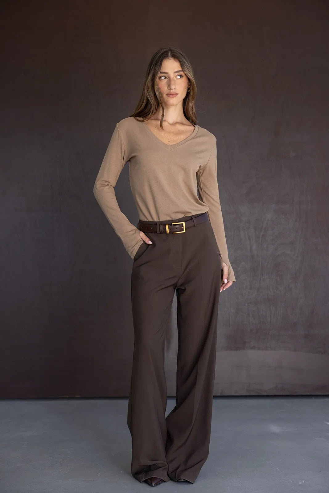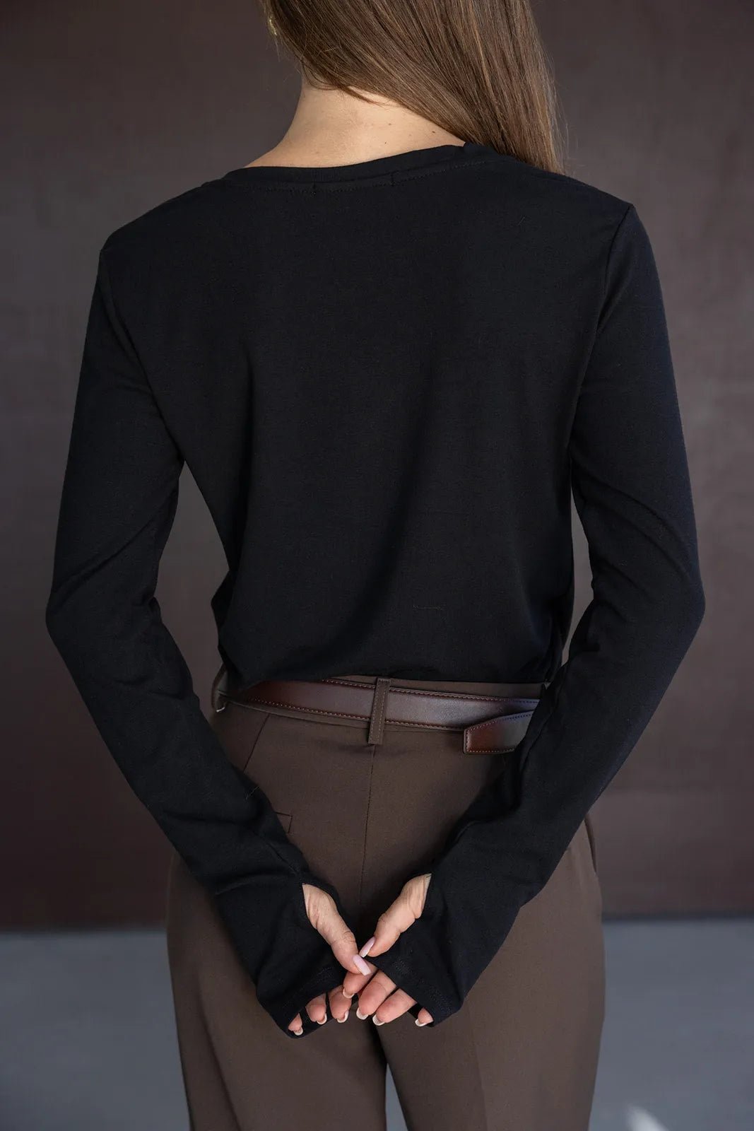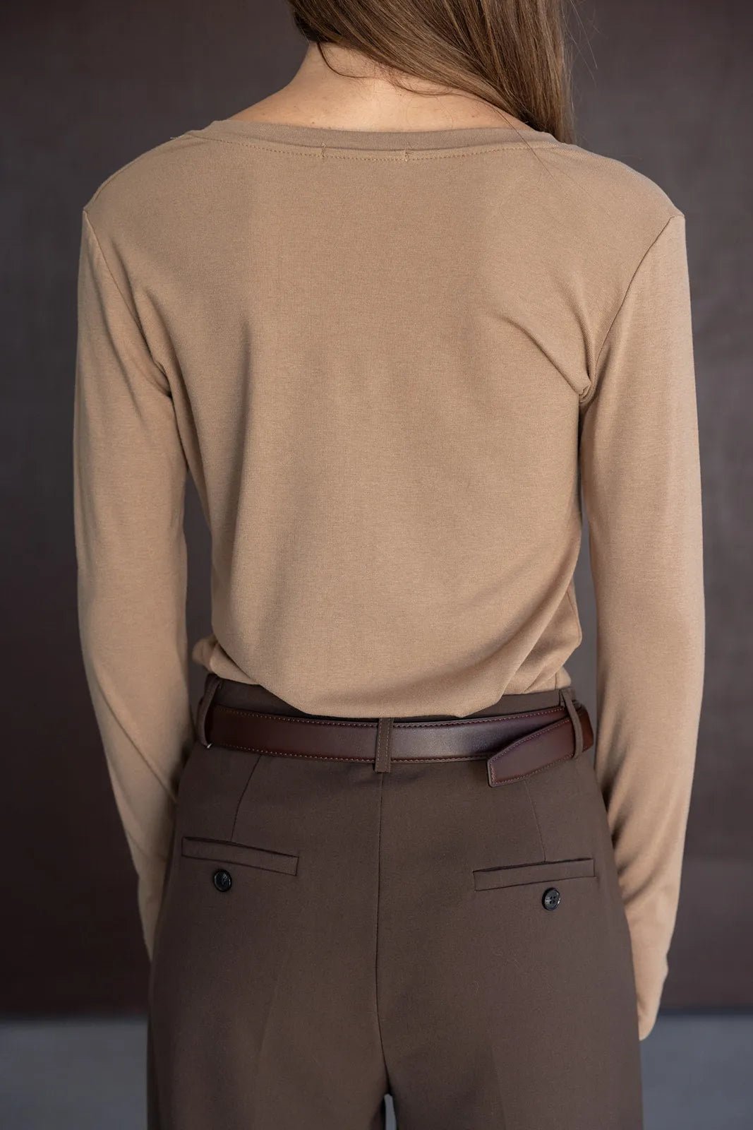 חולצת בייסיק איכותית ונוחה ביותר, בשילוב צווארון וי פתוח ושרוולי כפפה.