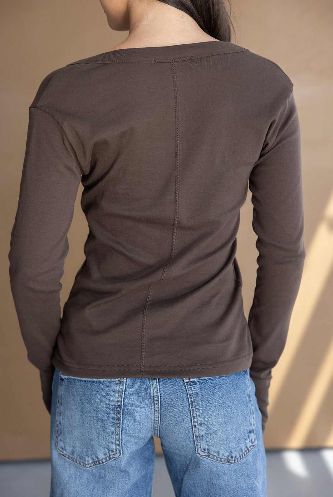 חולצת בייסיק מבד נעים ואיכותי ובגזרה מעט משוחררת. בשילוב צווארון וי בצבע שחור והדפס פסים לרוחב החולצה.