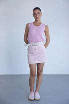 חצאית קלאסית בגזרת מיני, בשילוב שני כיסים קדמיים ושני כיסים אחוריים.