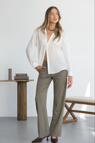 מכנס אלגנטי קלאסי בגזרה ישרה. בשילוב שני כיסים קדמיים, שני כיסי דמה אחוריים, כפתור ורוכסן.