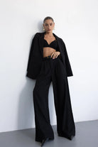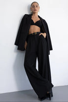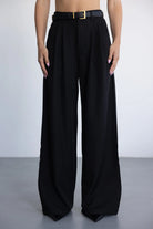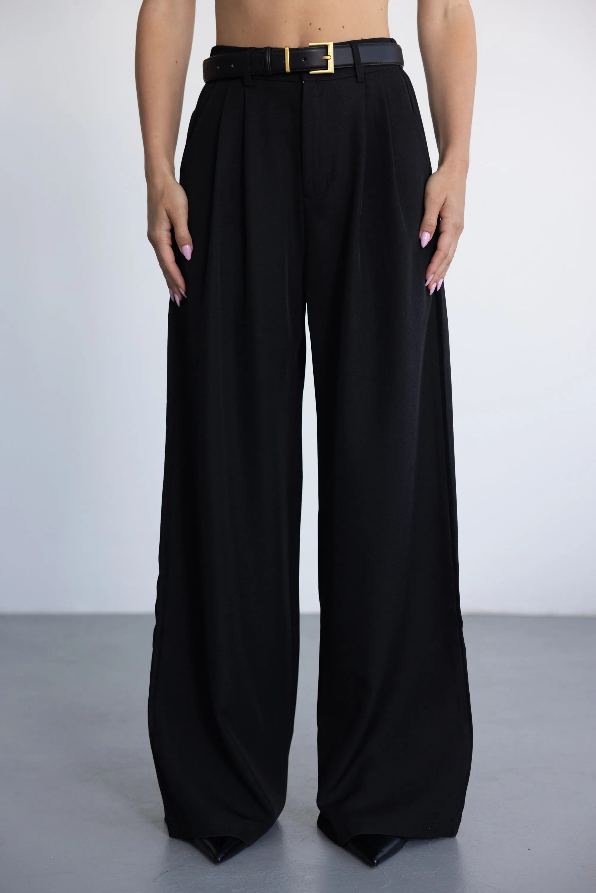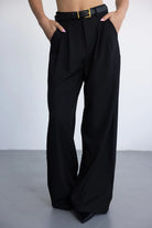 מכנס מחויט במראה קלאסי וגזרה משוחררת, עם כפתור ורוכסן ושני כיסים קדמיים.